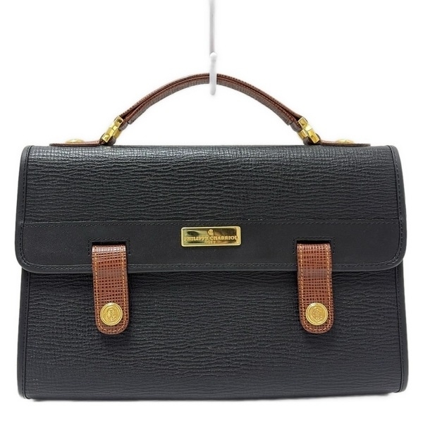 フィリップシャリオール PHILIPPE CHARRIOL ハンドバッグ - レザー 黒×ダークブラウン 美品 バッグ
