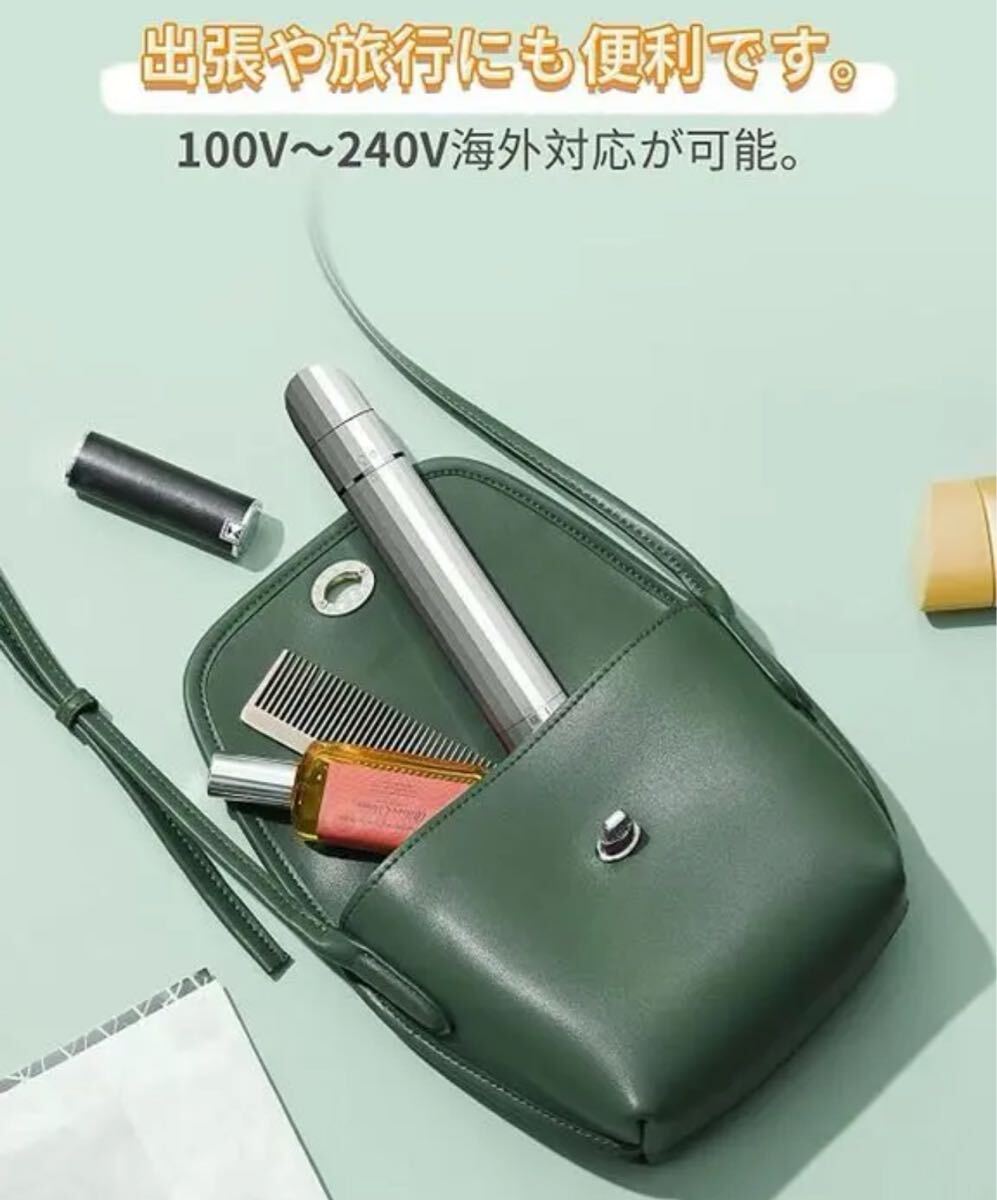 【ミニサイズ & 持ち運びに便利】スリムに持ち運べるコンパクトなモバイルヘアアイロン 。ミニサイズなので持ち転びやすく、カバンなどに入れても場所をとりません、220gの軽量でいつでもどこでもスタイリングできます。忙しい朝でも、旅行/出張/デート前でも、スタイリングがすぐできます。全長17cmのモバイルサイズだから、本体が熱いままでもすぐに収納できるので、お出かけや旅行にも便利です。家庭用電源対応のプラグも付属していて、コンセント式だから機内持ち込みもOKですし、電源線の取り外しも可能です。