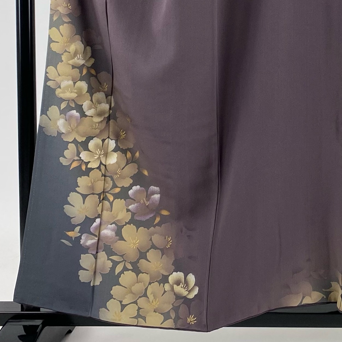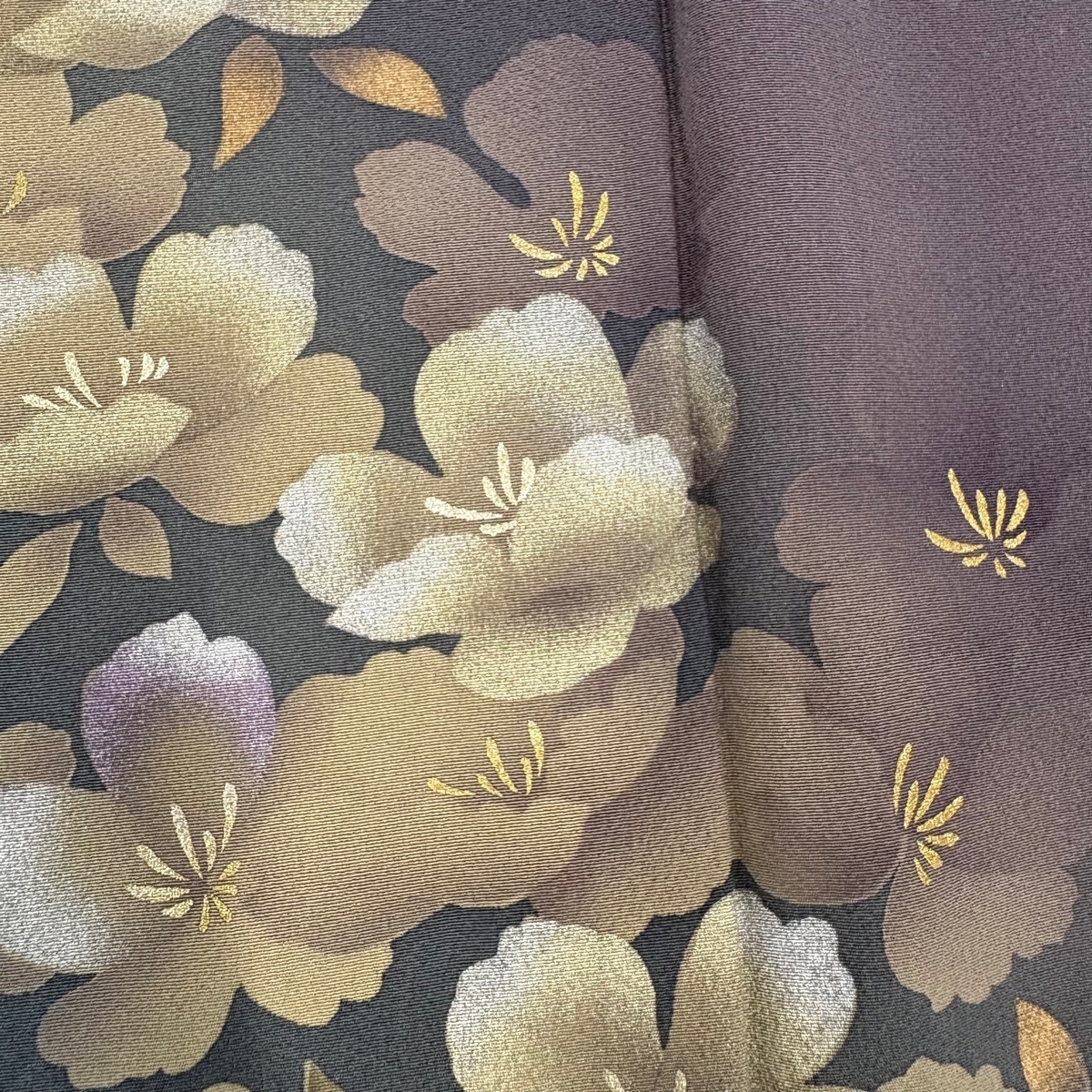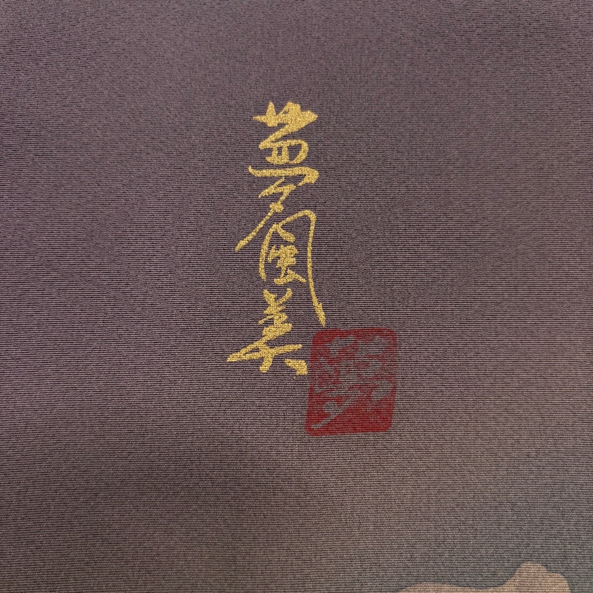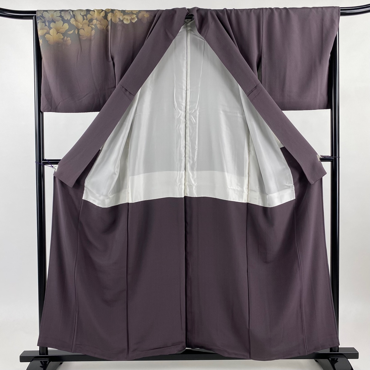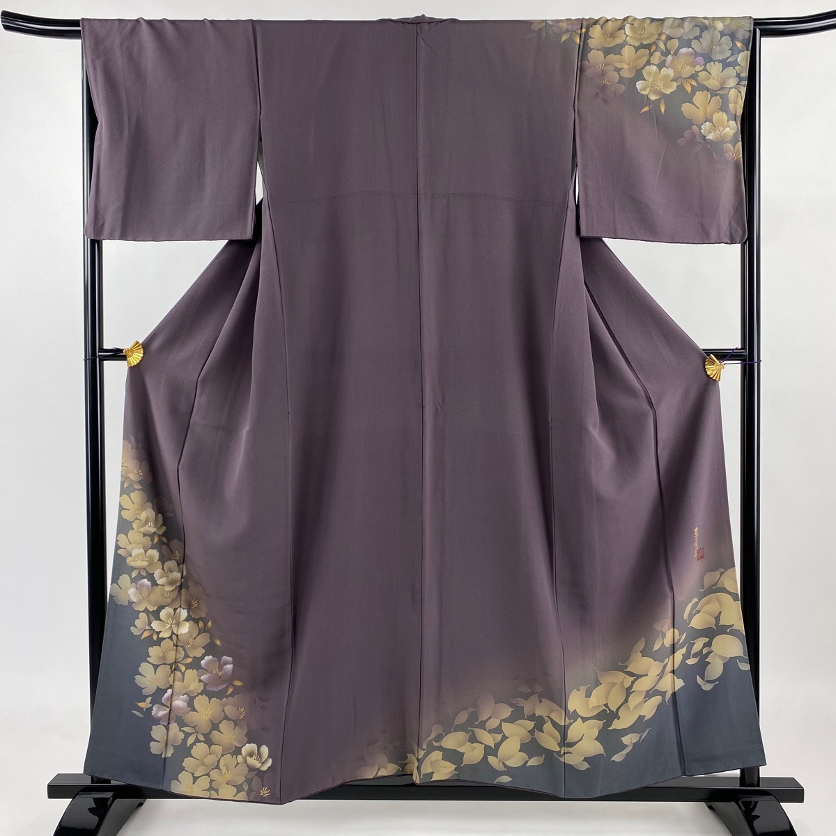 | 付下げ 秀品 落款 花 葉柄 金銀彩 紫 袷 身丈156.5 裄丈65.5 M 正絹 【中古】 |