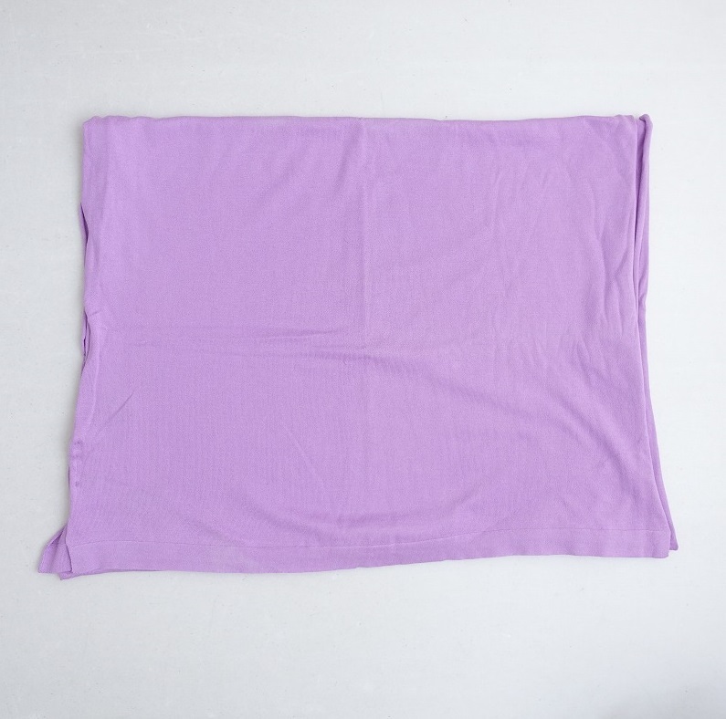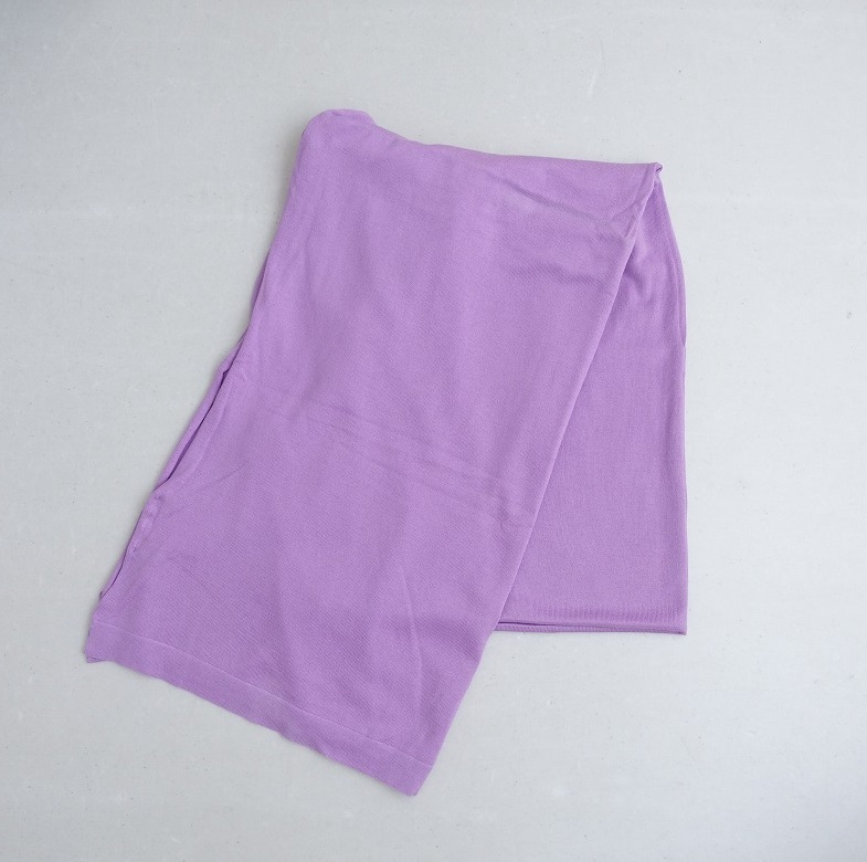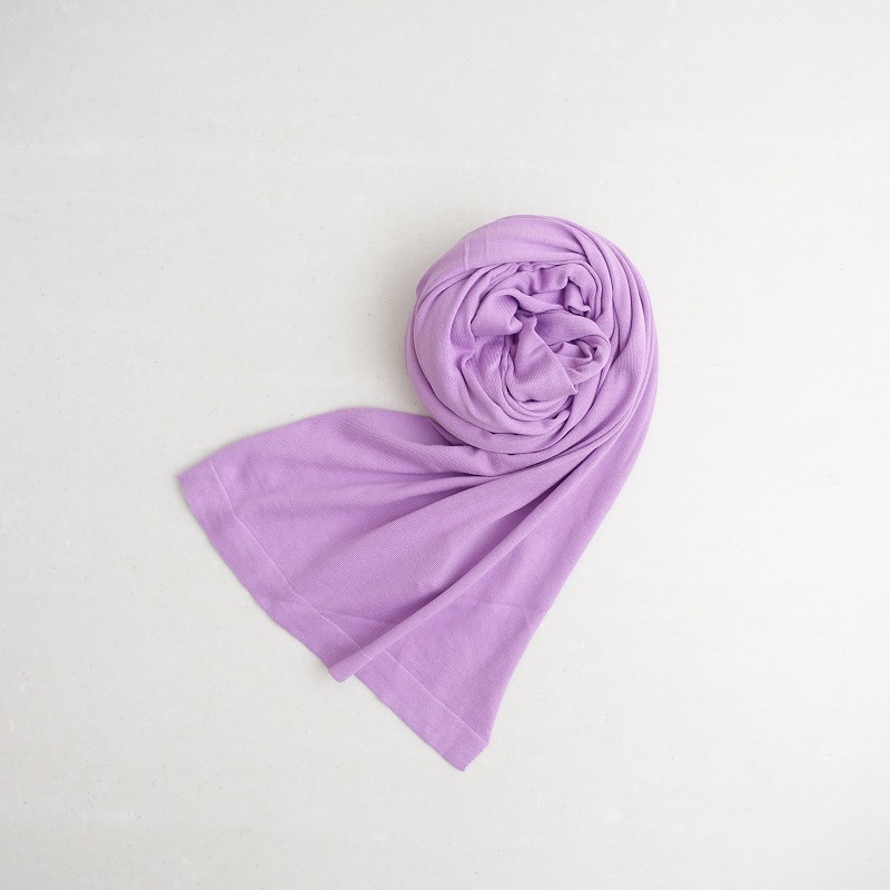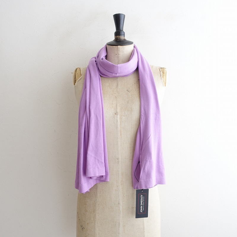 | JOHN SMEDLEYのCOTTON SHAWLです。カラーはライトパープルで、綿100%の天竺ニット地です。長辺はロール仕様です。 |