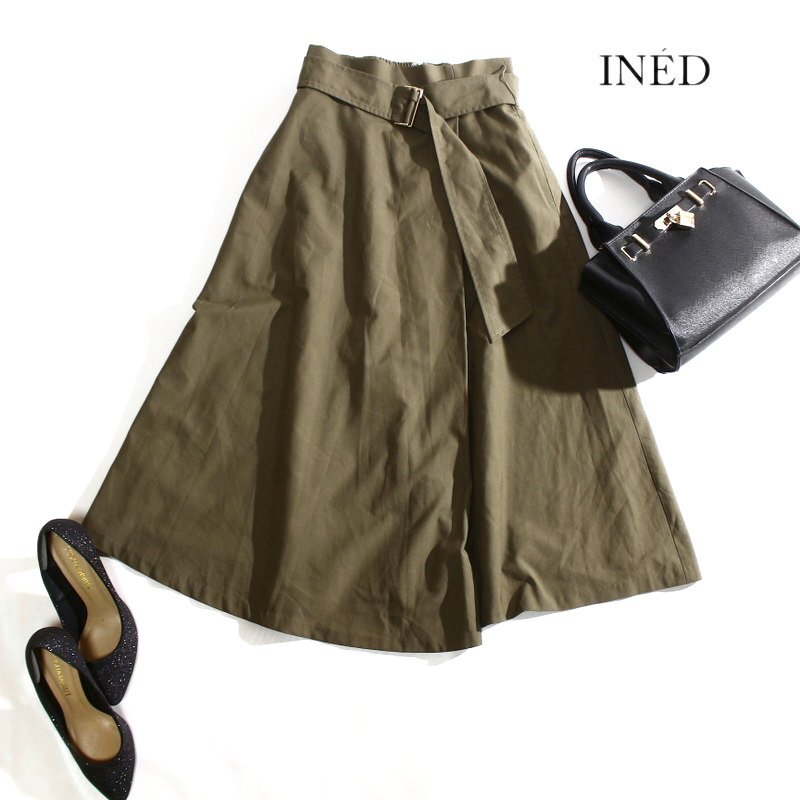 美品 エニィスィス anySiS 組曲 株)オンワード樫山 合物 ミディ ベルト Aライン フレアスカート 1 S カーキグリーン 緑 膝下丈 ミモレ丈
