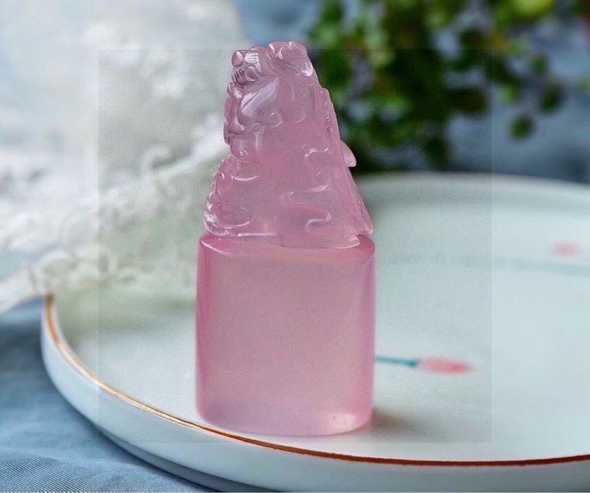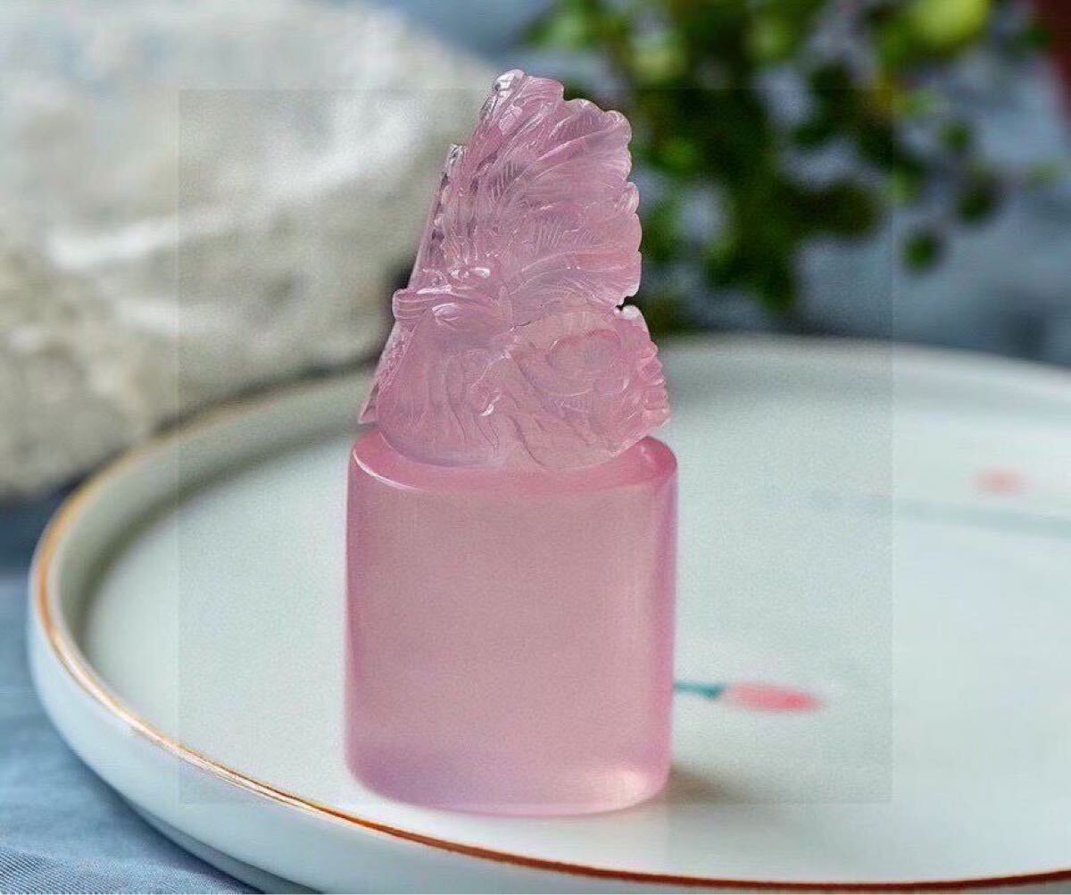 透明度抜群、高級なスター ローズクォーツの印鑑材です。
