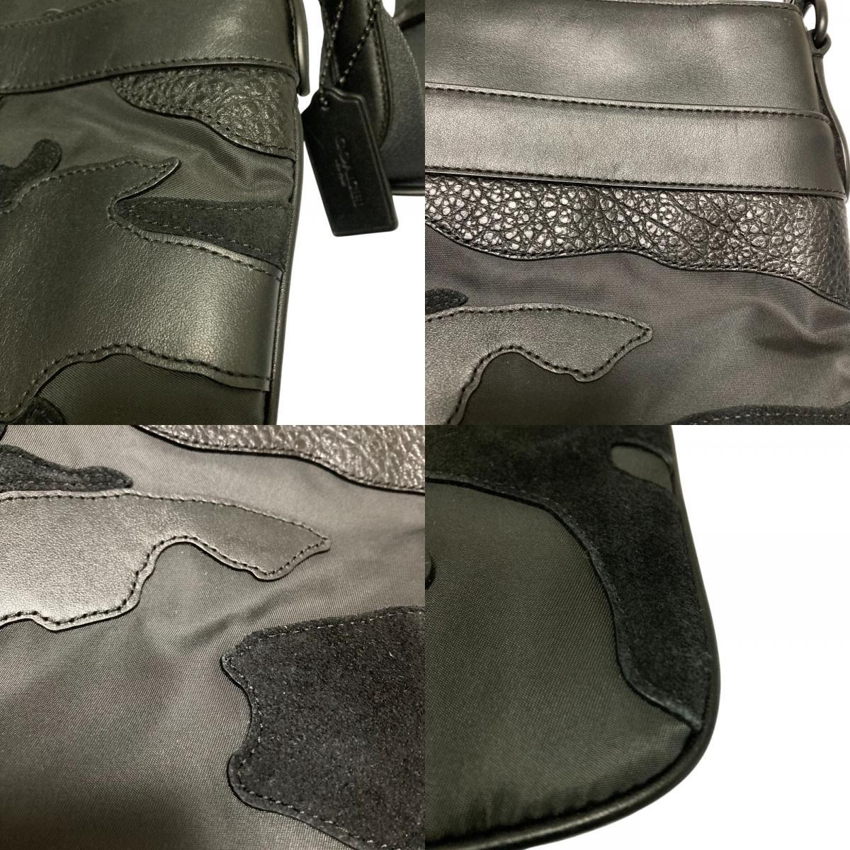 美品 COACH コーチ レザー スエード ブラックアウト カモフラージュ クロスボディー ショルダーバッグ F11588 ブラック