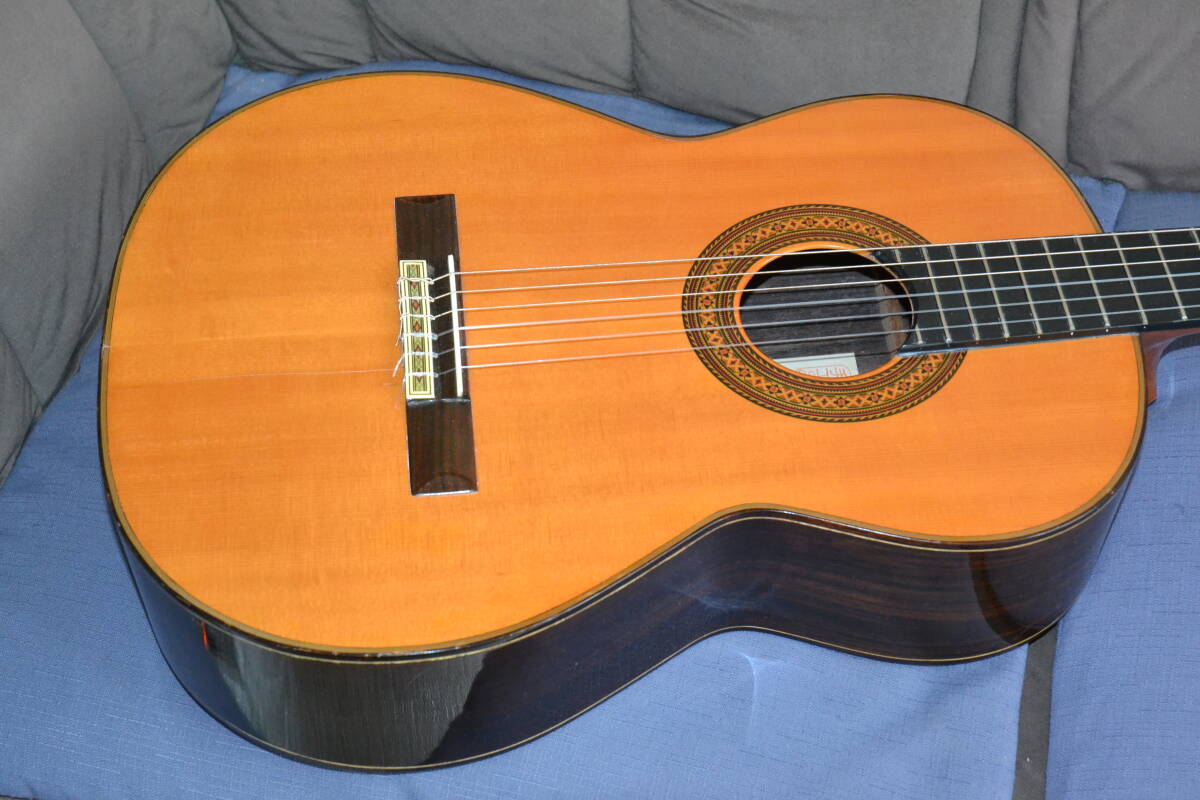 されました 基本は、ラミレス(1a)モデルで  表板セダートップ 側裏板ローズウッドで、ヘッドは