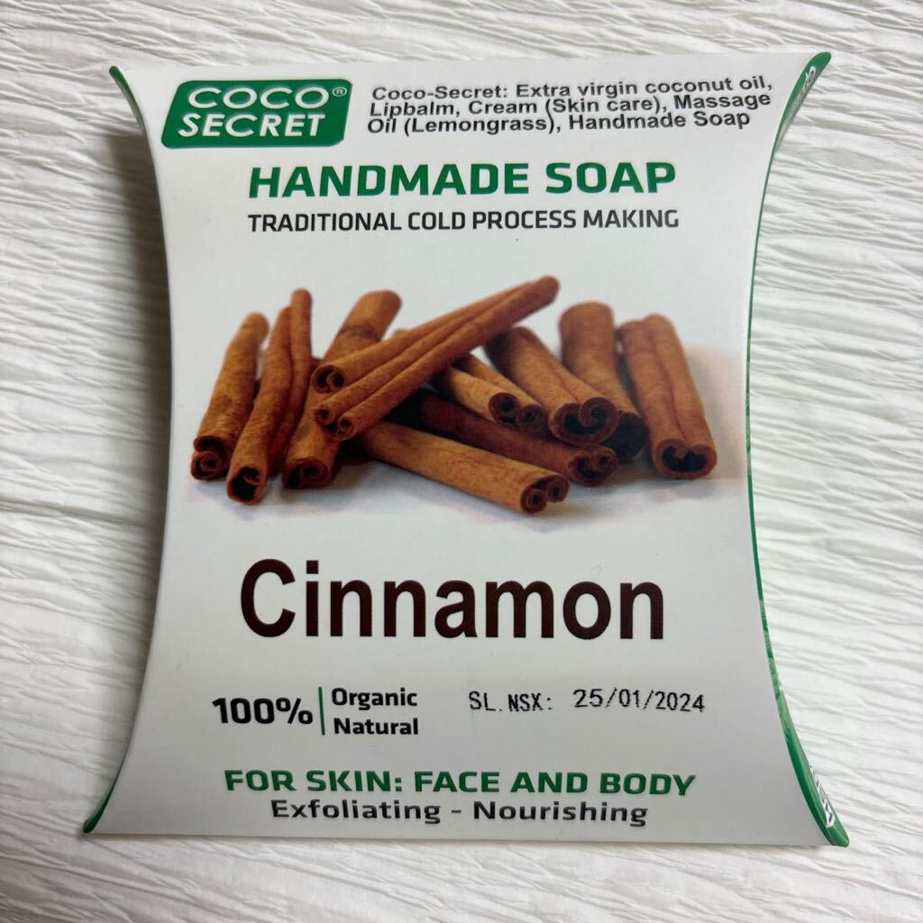Coco Secretのハンドメイドソープは、オーガニック天然素材を使用しており、肌に優しいです。シナモンの香りが特徴で、リラックス効果があります。