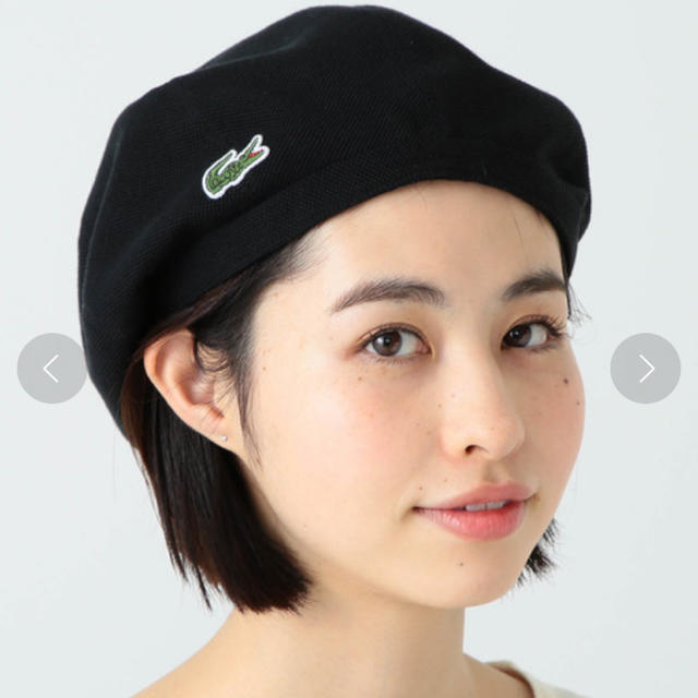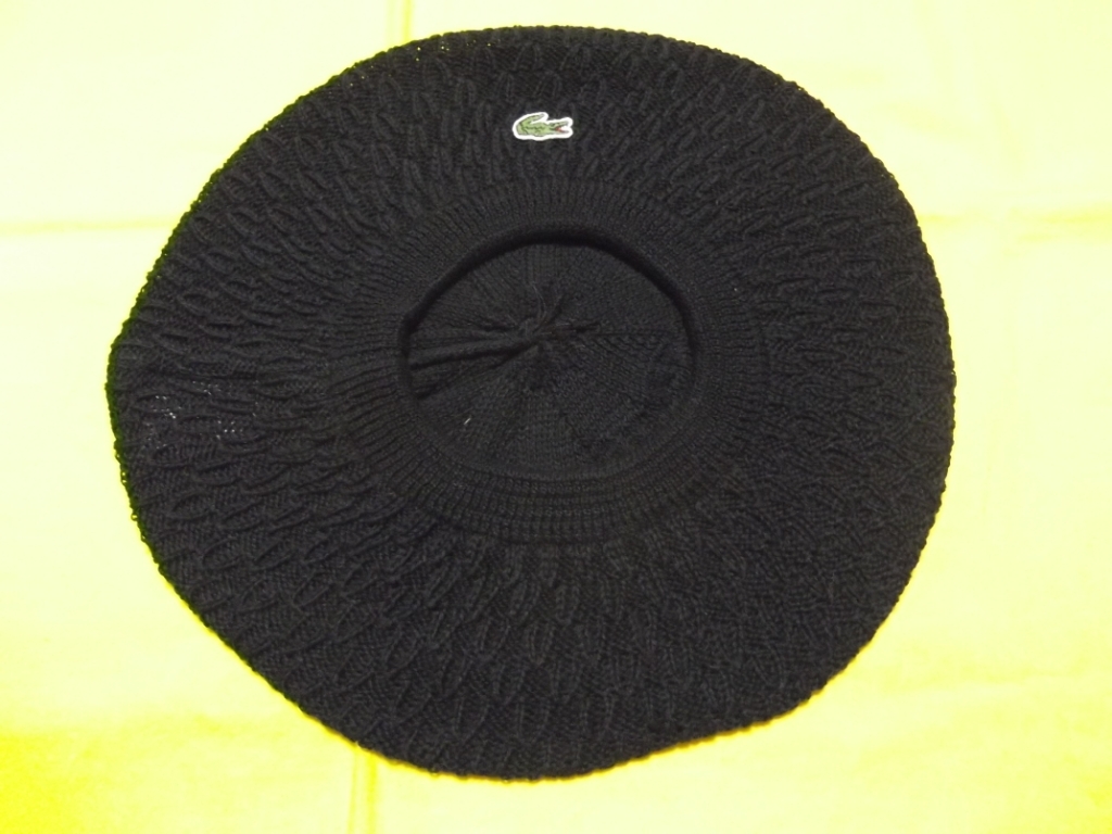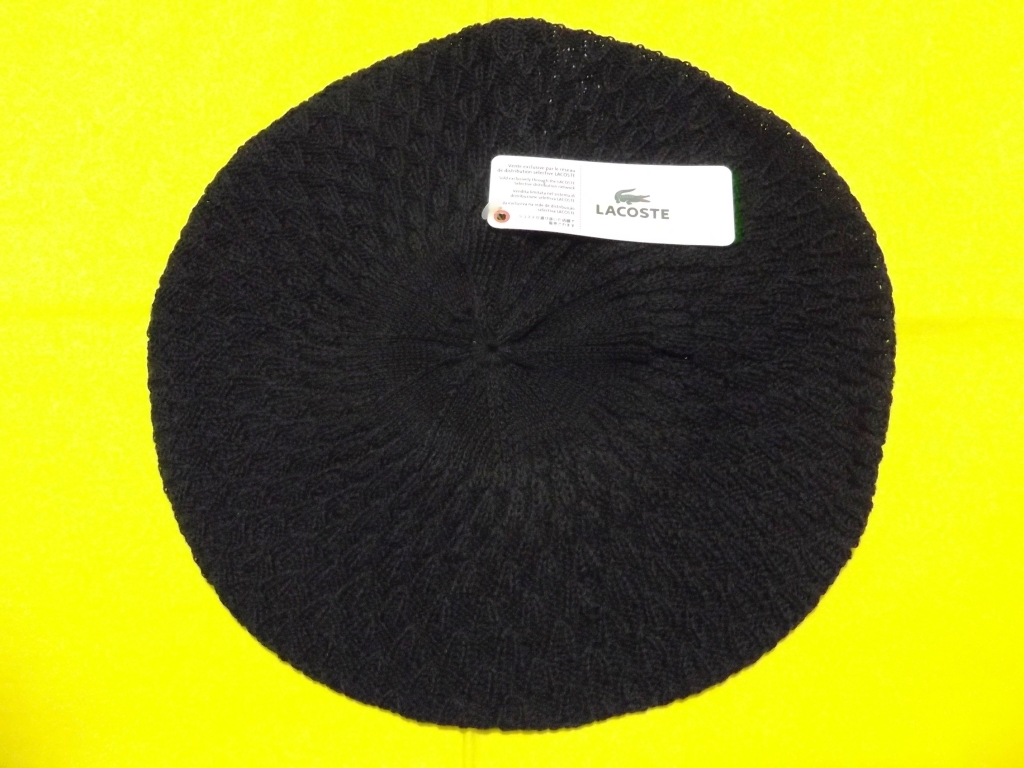 ●ラコステ コットンベレー ニット ベレー 帽子 ブラック フリー 日本製 柄編み ベレー帽