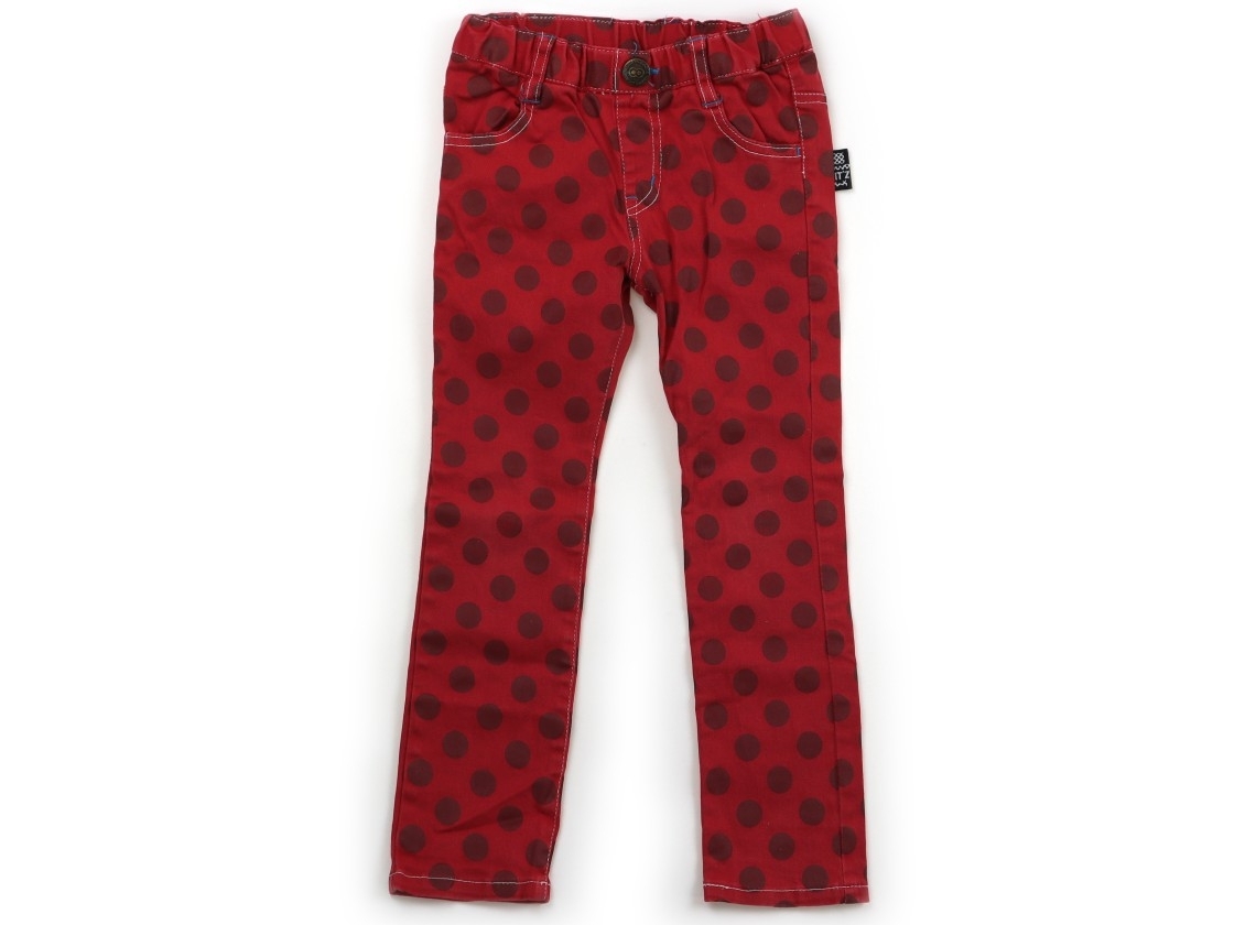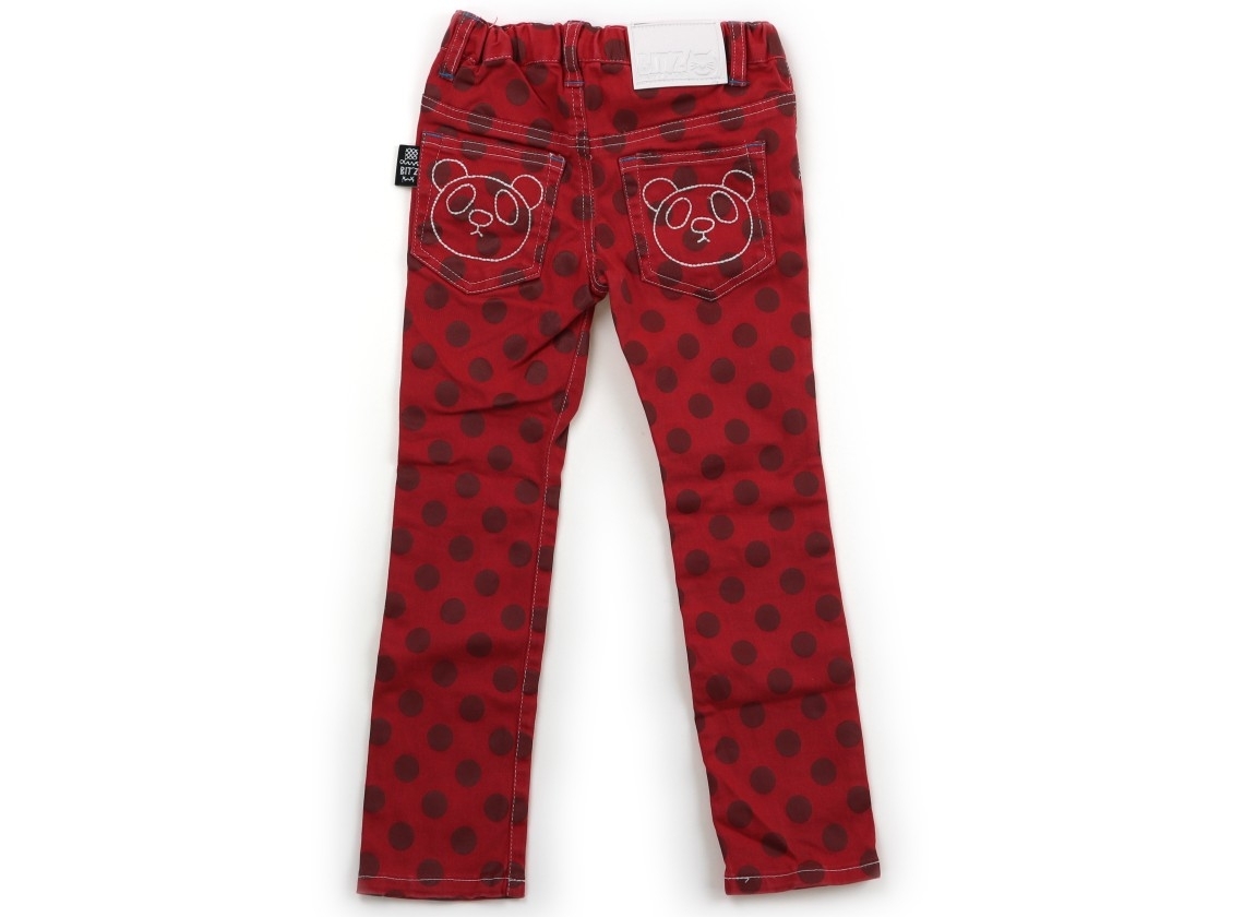 ポリウレタンコットン。ウエストのゴムは交換穴があります。全体的に色褪せがあります。まだお使いいただけそうです。パンダのステッチが可愛いデザイン。