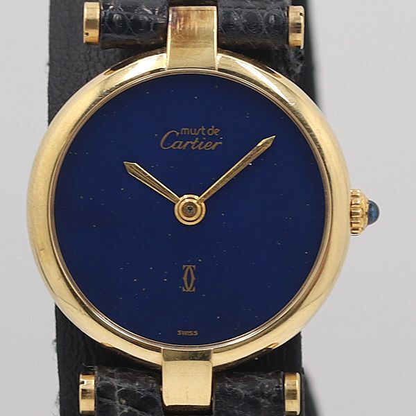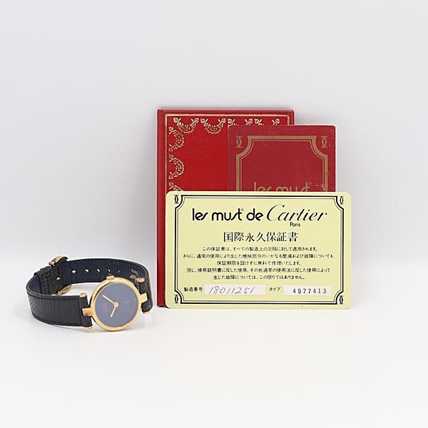 デッドストック級 カルティエ 永久保証書付 マストヴァンドーム SV925 ネイビー文字盤 QZ レディース腕時計 OGH 276ABC0673300