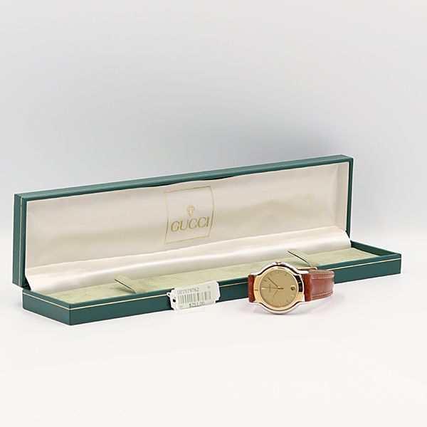 デッドストック級 箱付 グッチ 8000M QZ ゴールド文字盤 デイト メンズ腕時計 OGH 9482ABC5949000
