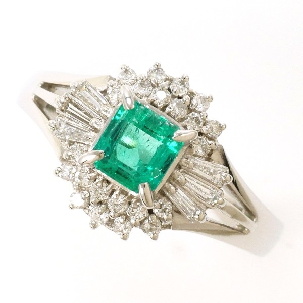 | PT900 リング 指輪 13号 エメラルド 0.54 ダイヤ 0.24 カード鑑別書 総重量約6.0g 中古 美品 送料無料 | |
