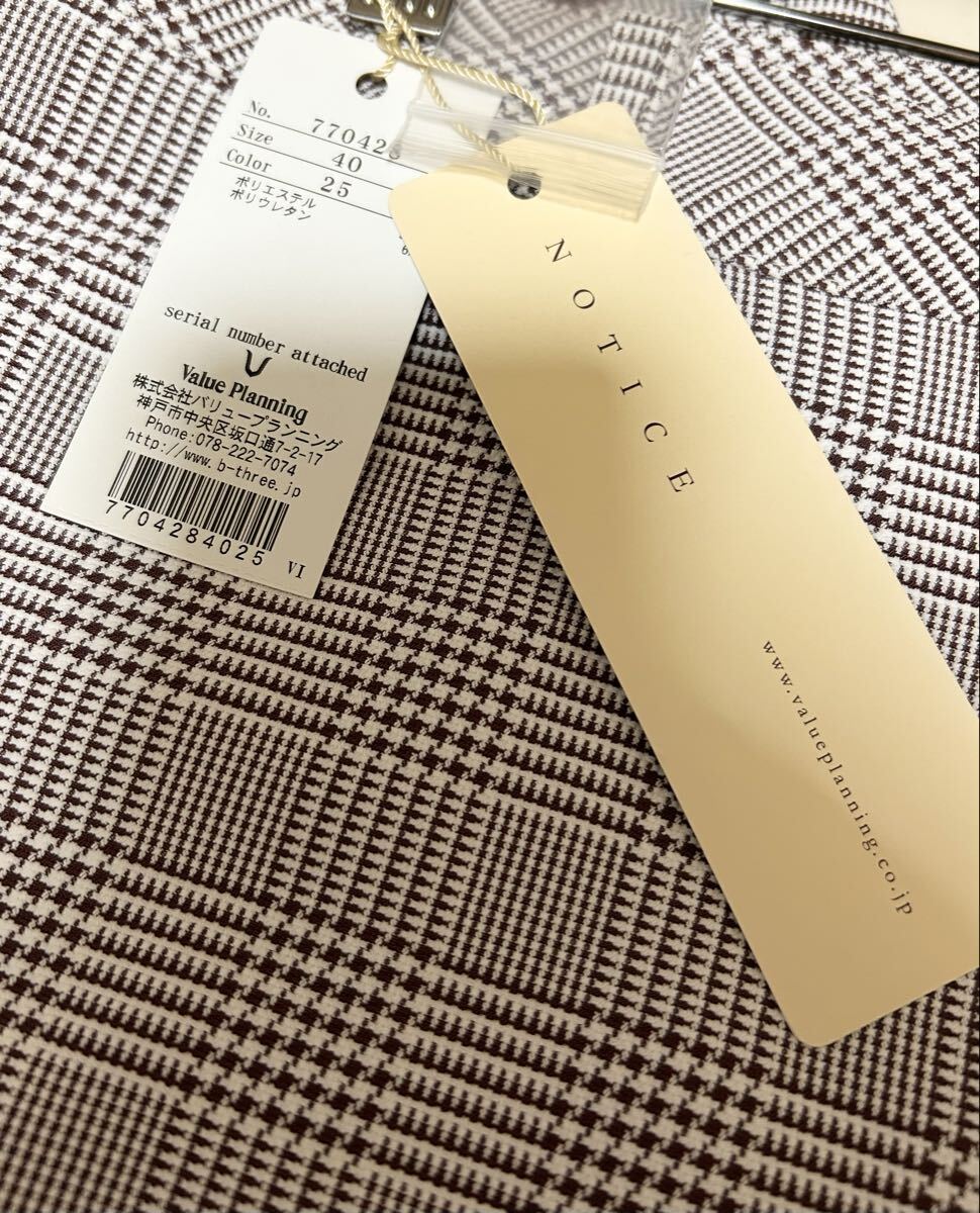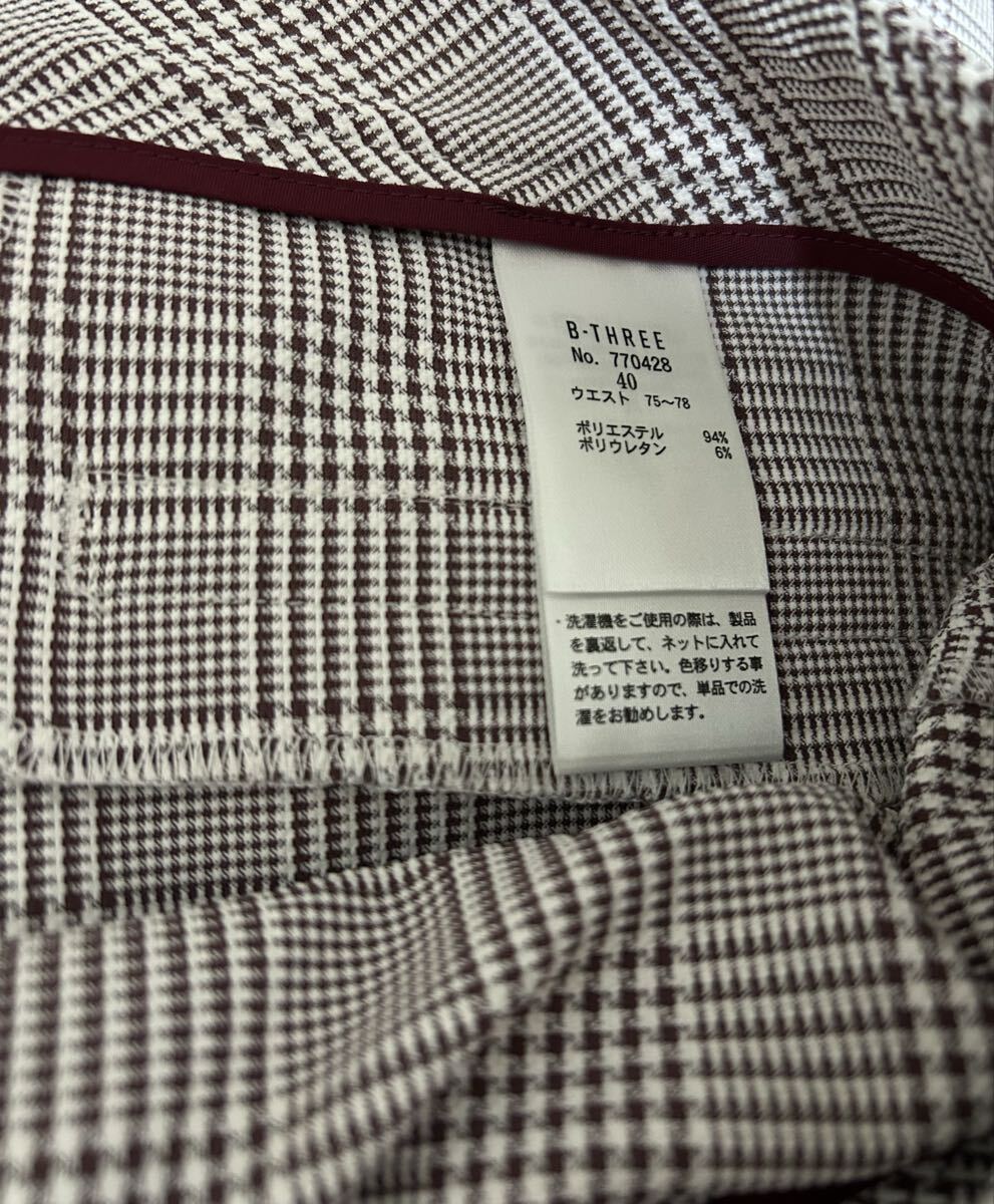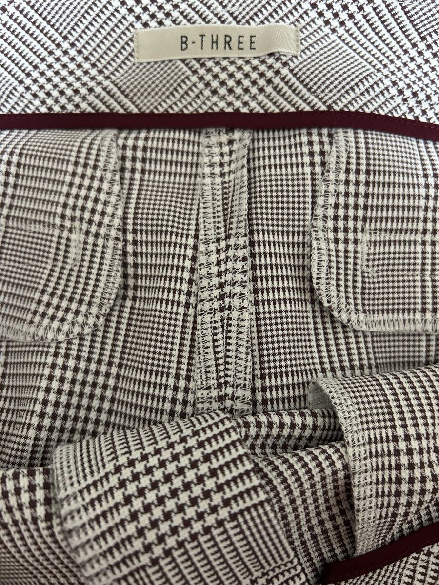 B-THREE(ビースリー)の大きいサイズのグレンチェッククロップドパンツです。試着のみで未使用です。お色味はブラウン系で写真8枚目が比較的実物と1番近いお色味です。裏地はございません。