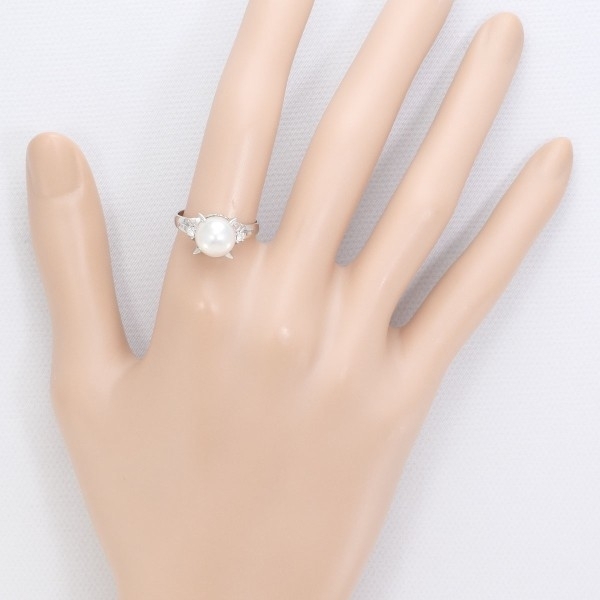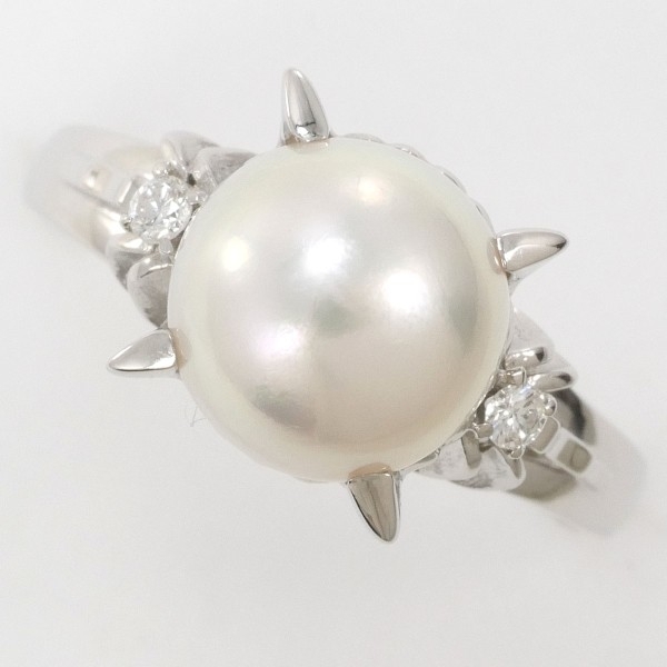 PT900 リング 指輪 13号 パール(真珠) 約8.5mm ダイヤ 0.04 総重量約4.7g 中古 美品 送料無料 | |