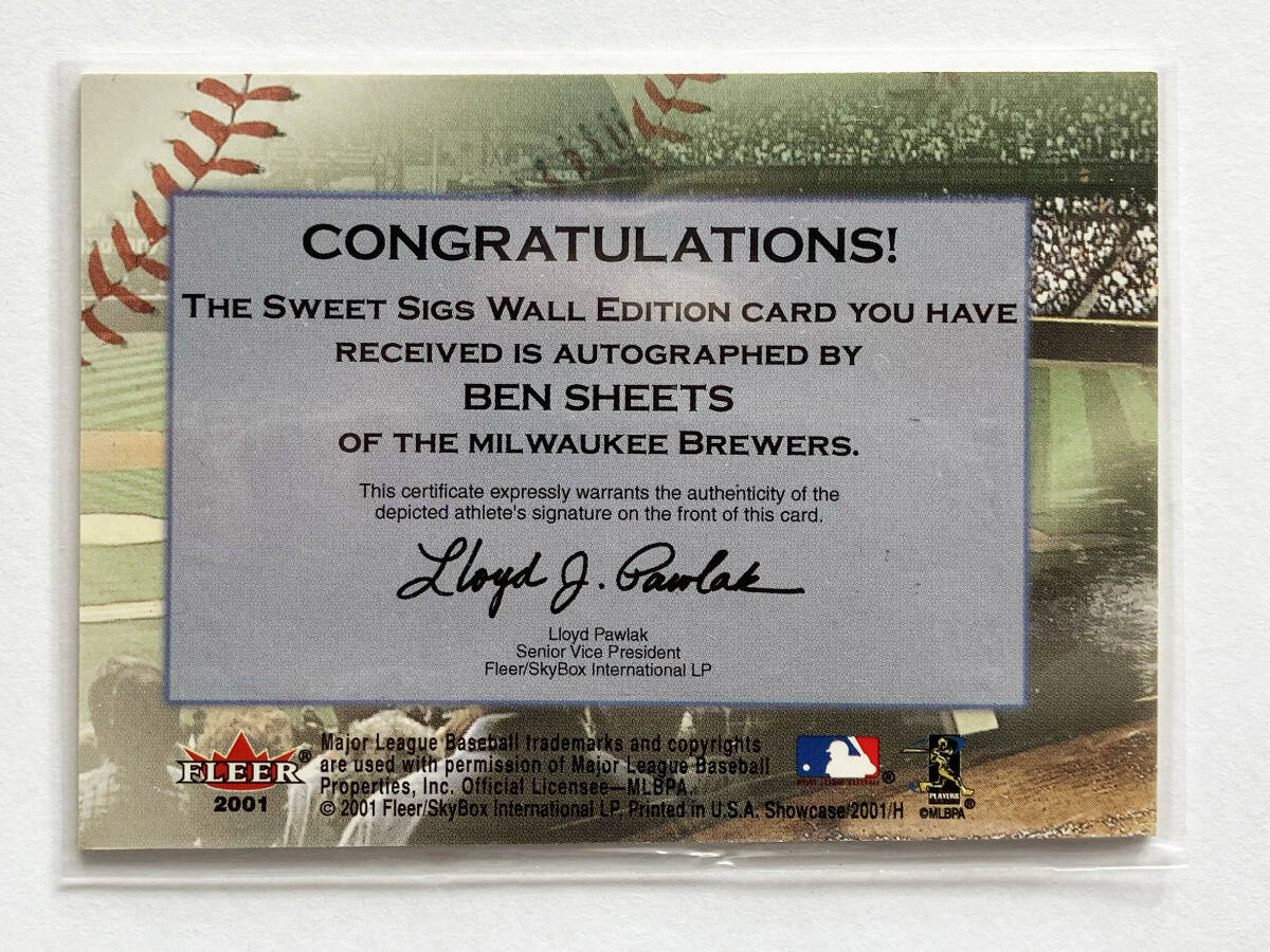 直筆サインカード!【ベン・シーツ / Ben Sheets】2001 Fleer Showcase - Wall Edition ★ Milwaukee Brewers ミルウォーキー・ブルワーズ