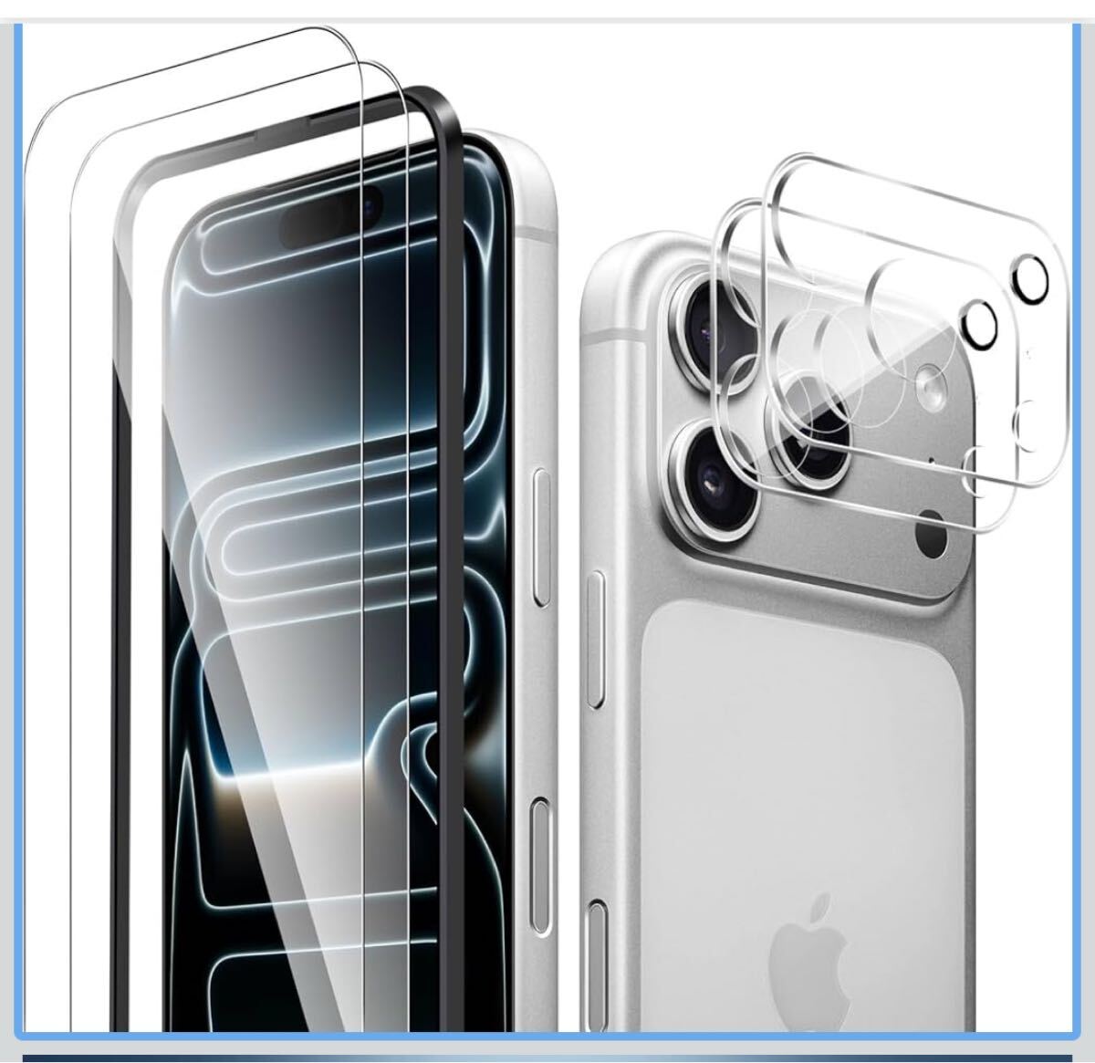 4枚入り】For iPhone 17 Pro ガラスフィルム (2枚)+カメラフィルム(2枚)指紋防止 iPhone 17 Pro フィルム salywin 9H硬度 衝撃保護 透明感良し 撥水撥油 気泡ゼロ 飛散防止 アイフォン 17 Pro 用 画面保護フィルム + レンズ保護フィルム