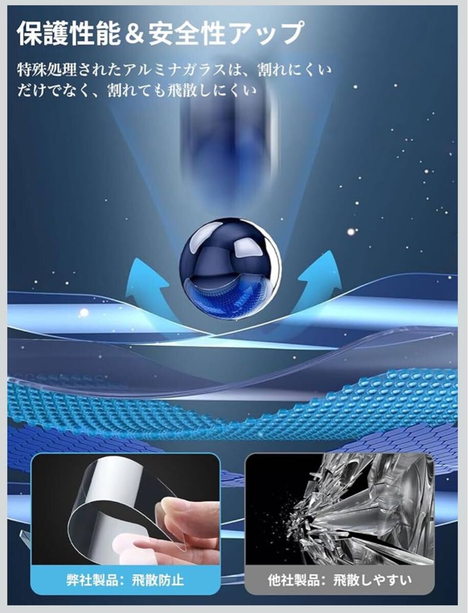 【9H旭硝子製保護フィルム】一番の保護性能を提供するために、このスマホ保護フィルムは業界一番の9H硬度の旭硝子素材を採用しております。日常利用中で万が一スマホ落下するなどになってしまえば、保護フィルム貼り付けられては最大限にスクリーンとカメラレンズを保護できます。フィルムが割れてもガラス破片が飛散することを防げます。