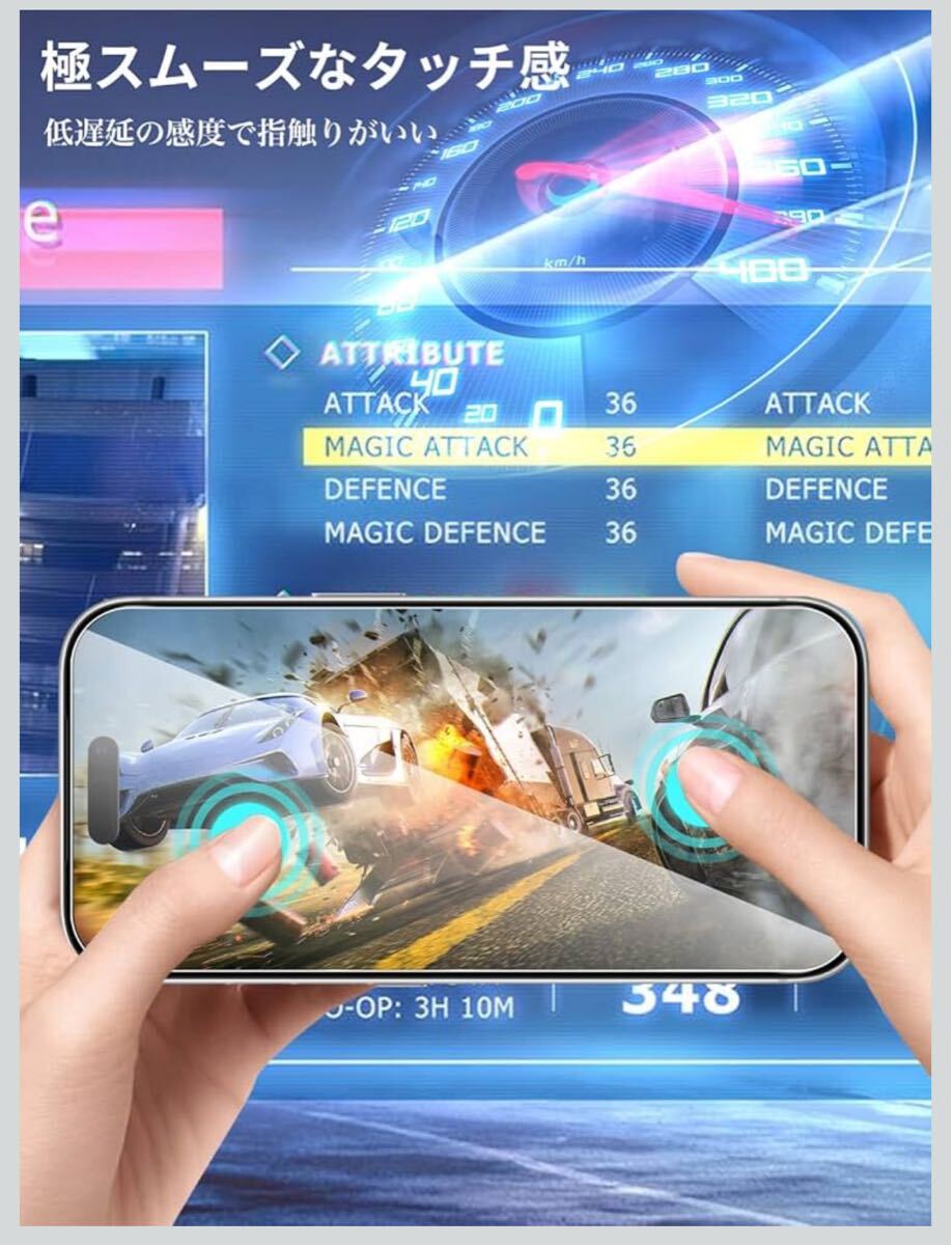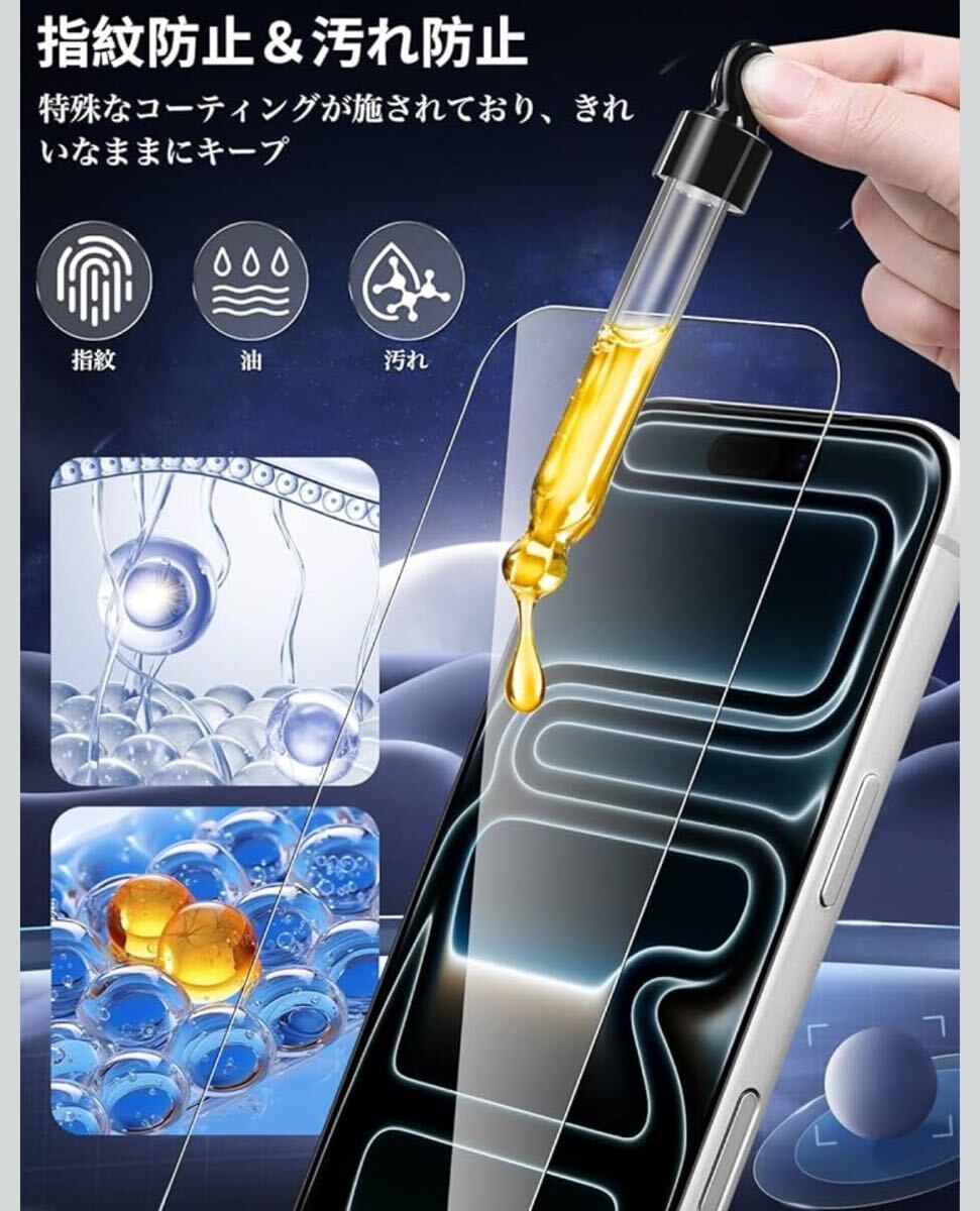 【特殊コーティング加工】保護フィルムは先端コ一ティングにより撥水撥油と指紋防止機能があり、長い時間スマホを使っても液晶画面がスムーズなタッチ感を保てます。手汗・水滴・油汚れなどが付着しにくいですので、爽やかな手触り感ができます。