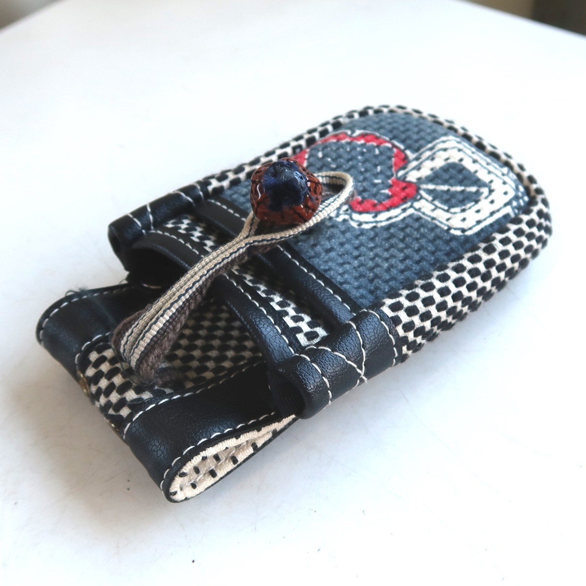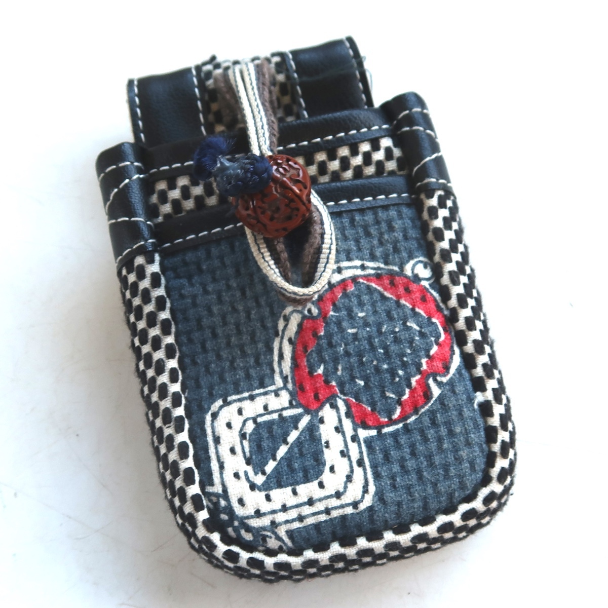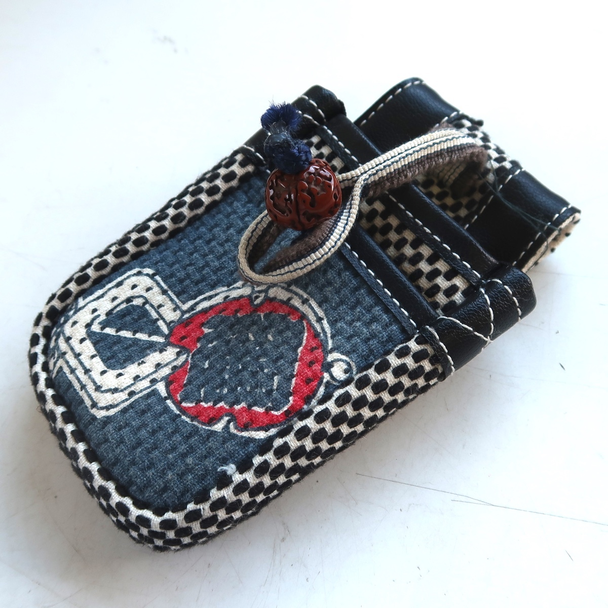 レトロ 刺子 携帯入れ? 煙草入れ? ベルトポーチ ウエストポーチ 根付 江戸っ子 大工 です。