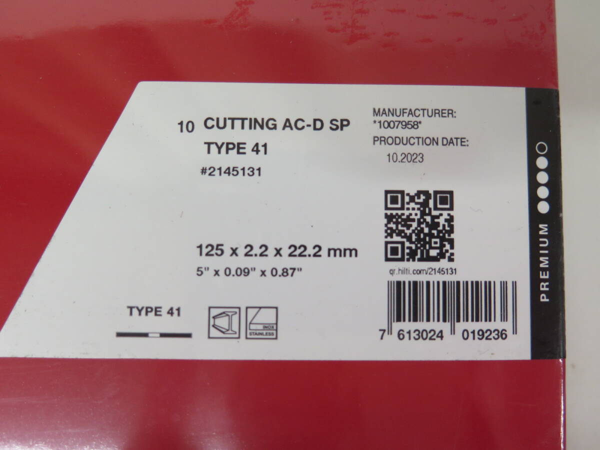 ⑫ 未開封新品 HILTI ヒルティ #2145131 カッティングディスク 切断砥石 10枚入 AC-D SP TYPE41 125×2.2×22.2mm