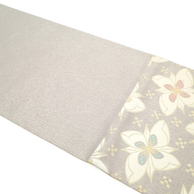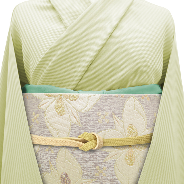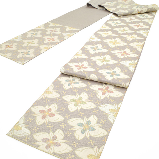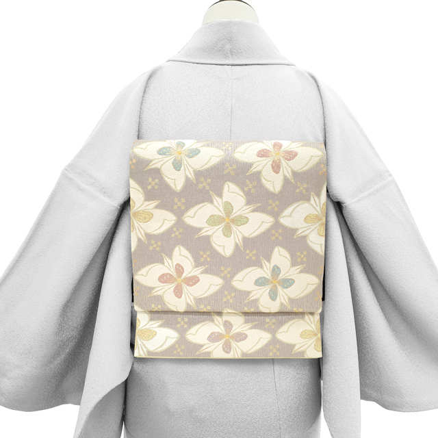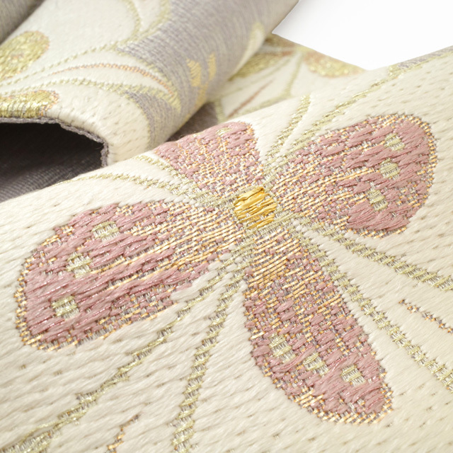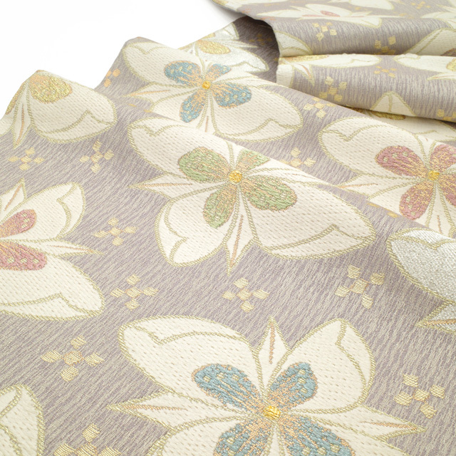 格式ある場にふさわしい気品を保ちながらも、やさしげな色合いが、見る人にやわらかな印象を与える帯でございます。