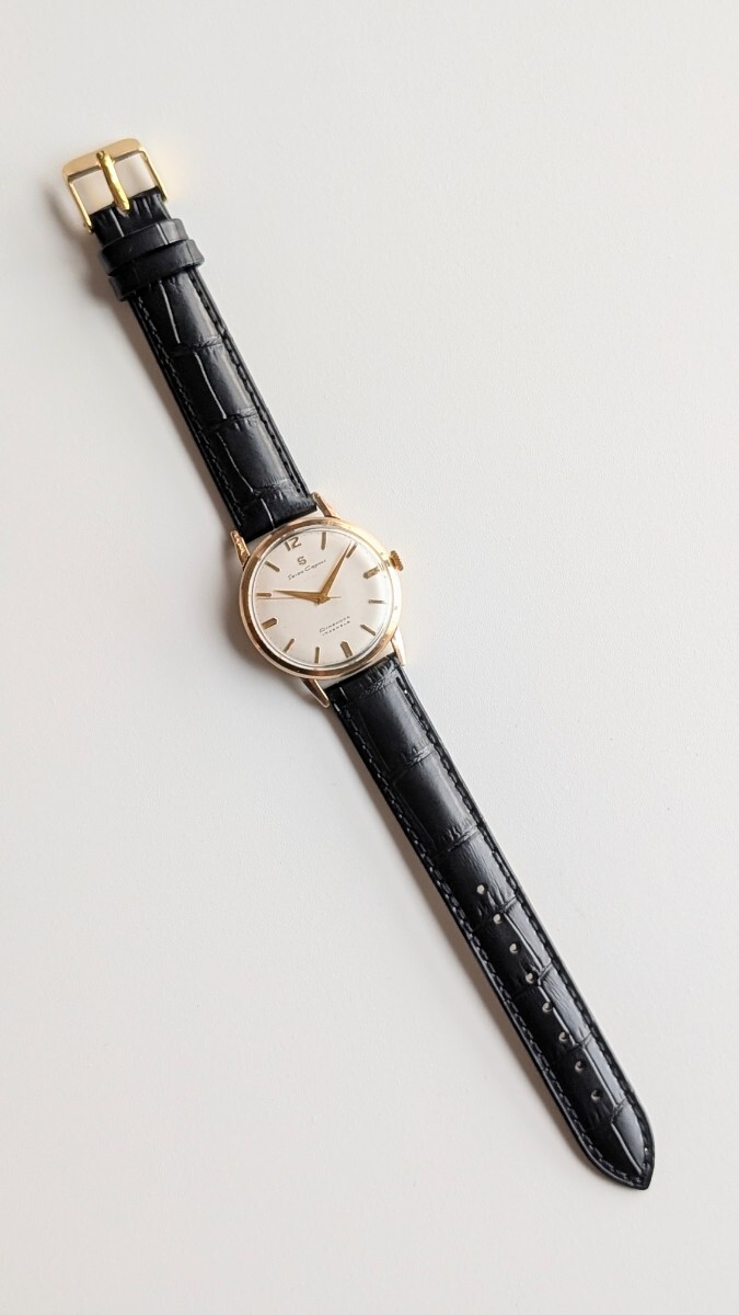 質実剛健なドーフィン針、すっきりと立体的な植字が特徴の端正なモデル。希少なSマークでダイヤルのロゴの書体も特徴的です。