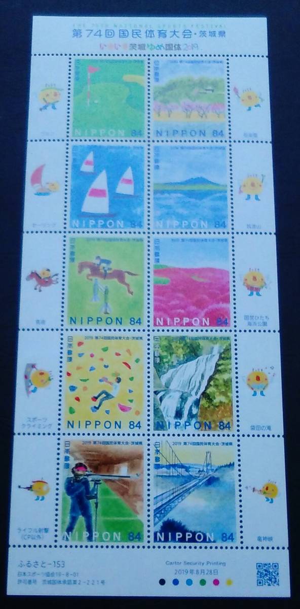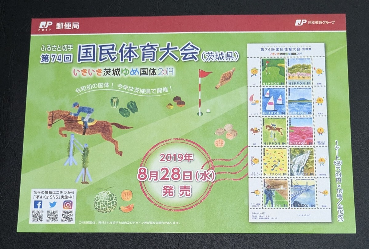 2019年・ふるさと切手-第74回国民体育大会シート(茨城)解説書付