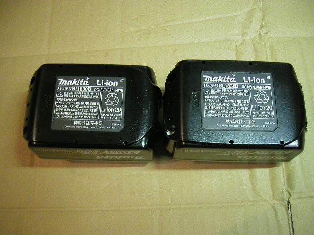 長期在庫のBL1830Bが2個。未使用セット品からのばらしです。満充電で1回充電記録(専用チェッカで確認)。長期在庫やセット品にありがちな(装着やケース等にあたる)スレ埃等あってもご了承を(当方見解レベルは過去評価等参照)。まぁ無いと思いますが、見解相違、誤記、見落とし、発送後の不具合含めNOクレームNOリターン厳守としますので心配な方はご辞退を(と言っても反して訴えてくる方は少なくともおてがる配送宅急便(補償が厚い)選択下さい)。自己紹介も出品条件。