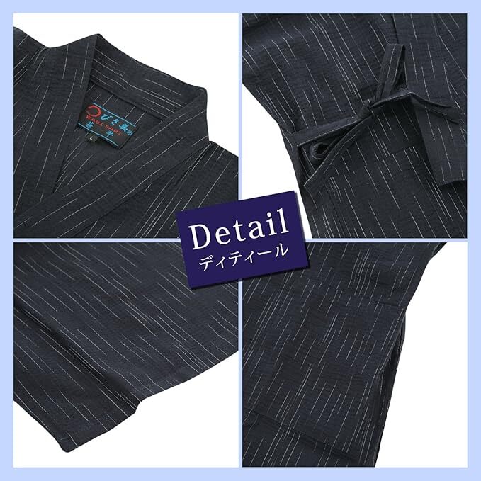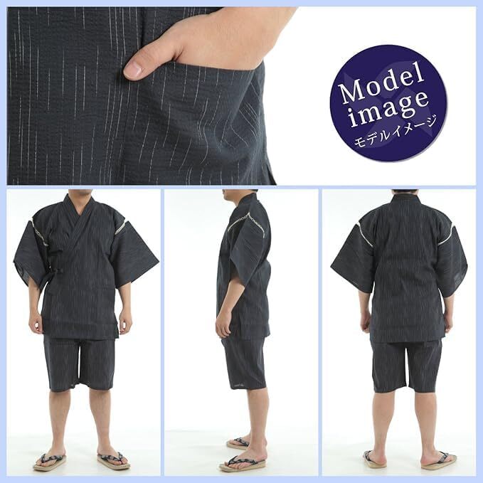 2XLサイズ 黒色 [江戸てん] しじら織り甚平 綿100% 涼しい着心地 和服 夏服 メンズ 大きいサイズ リラックスウェア お祭り