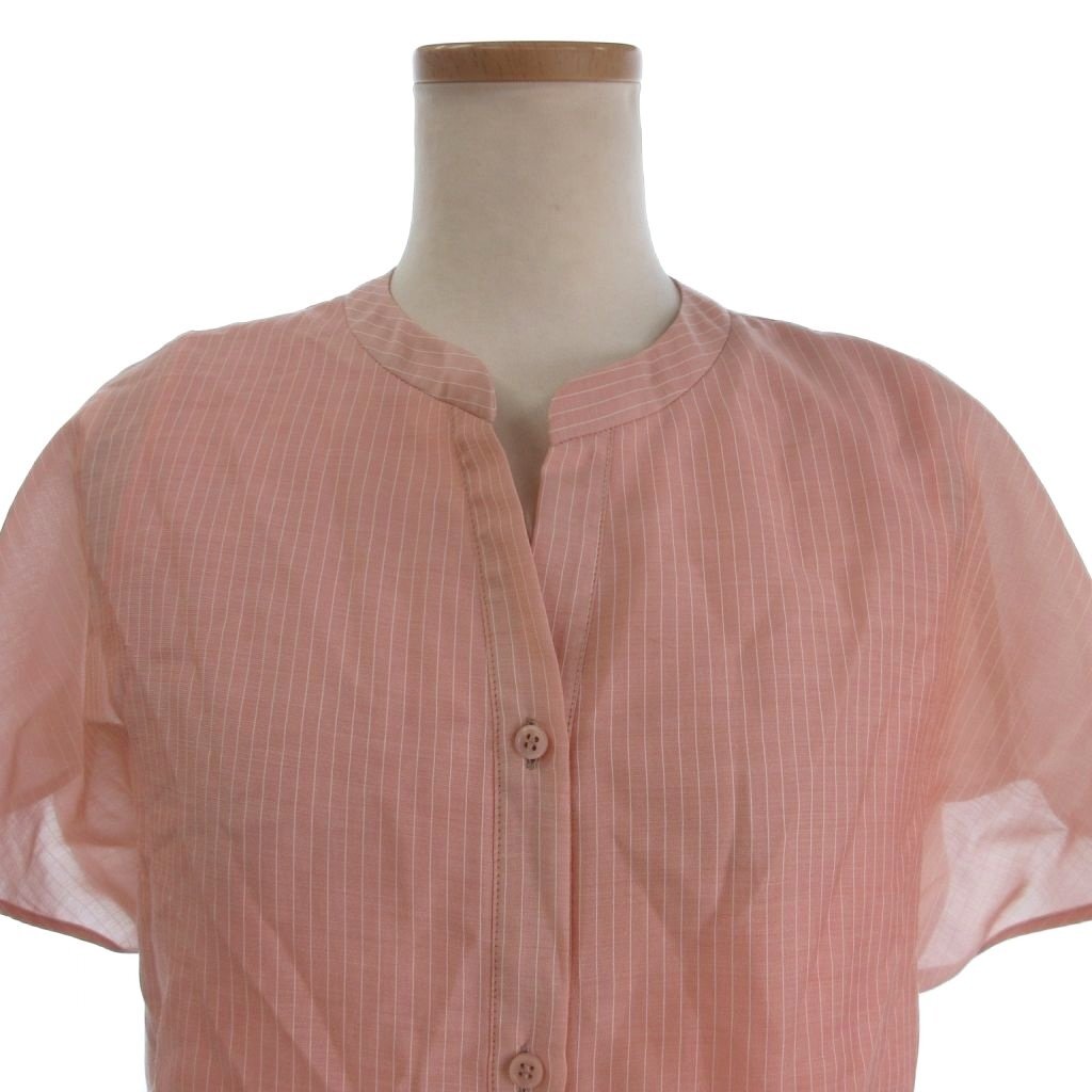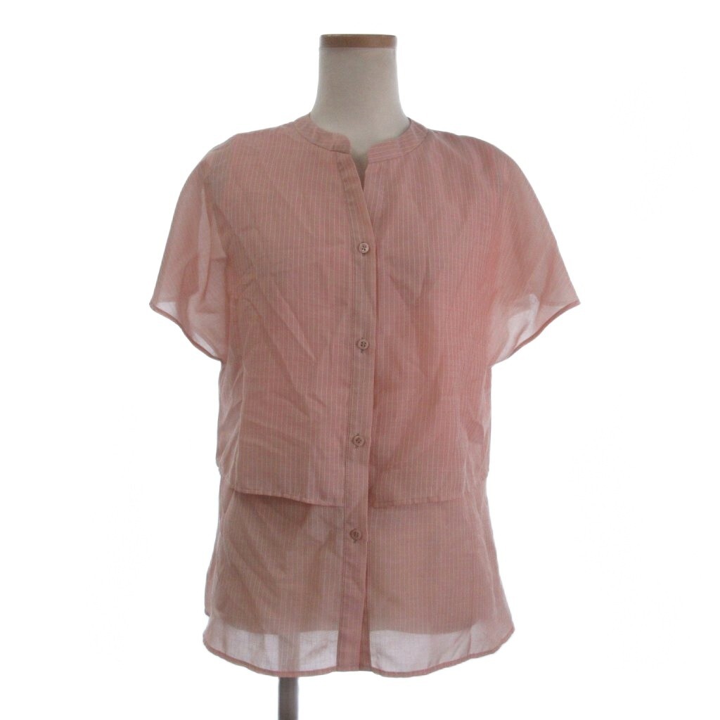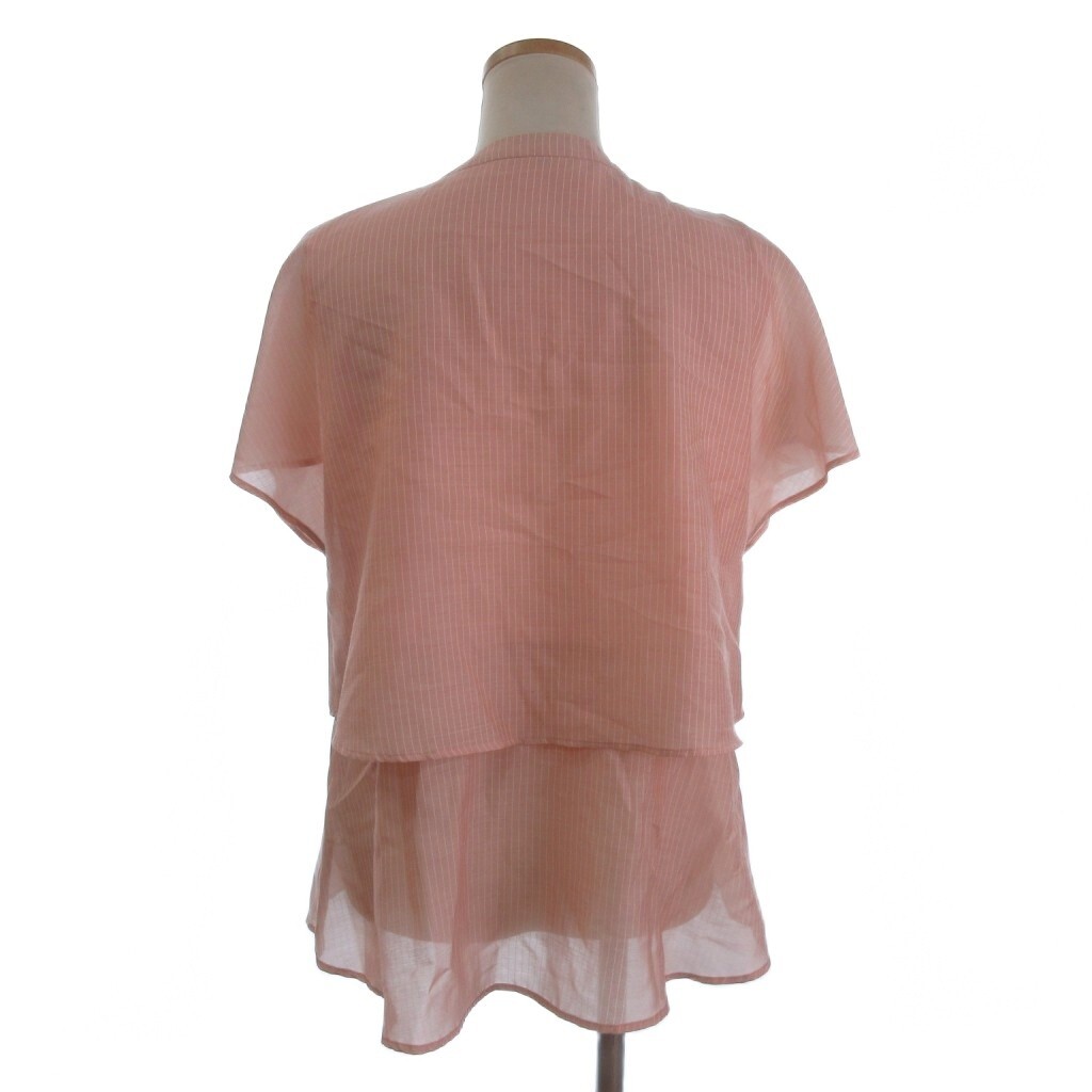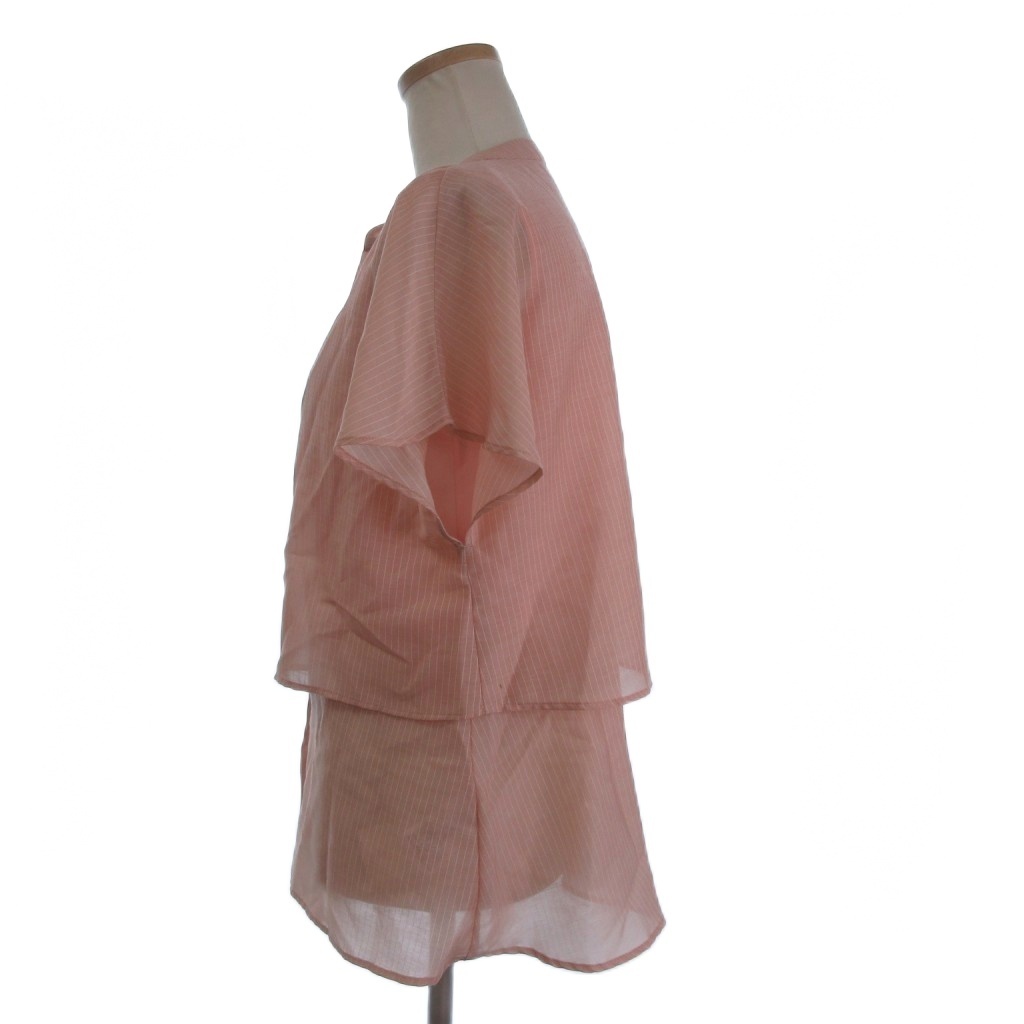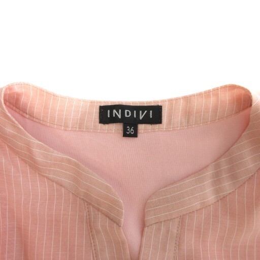 インディヴィ ティアードブラウス シャツ フレンチスリーブ 開襟 バンドカラー 洗える エアリー ストライプ ピンク 36 ■FF