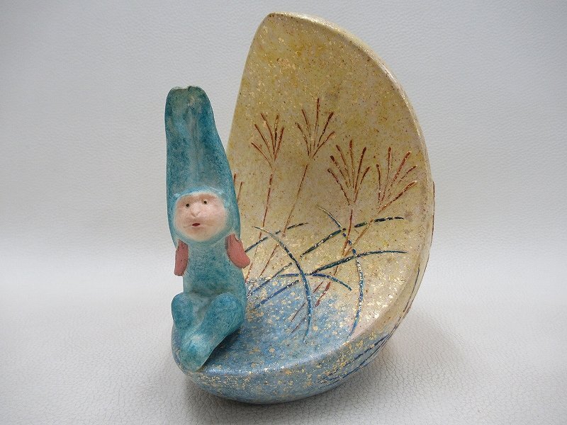 D2651 人形師 紺谷力 「月に遊ぶ」 猿 置物 申 陶人形 |
