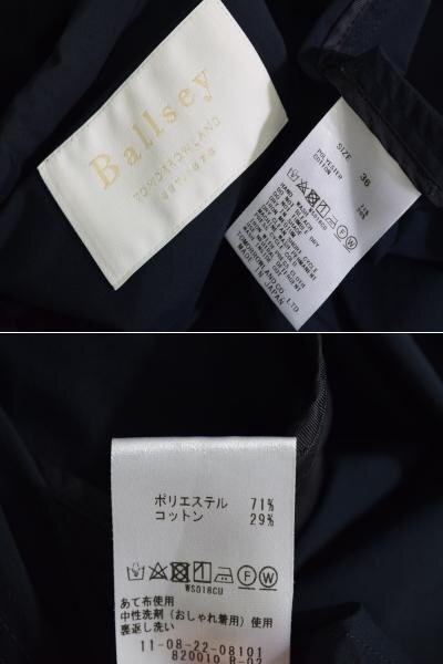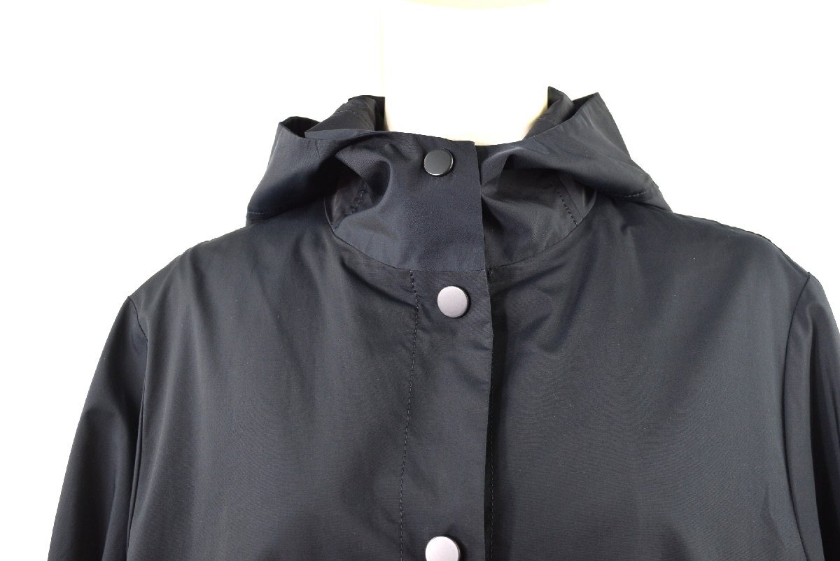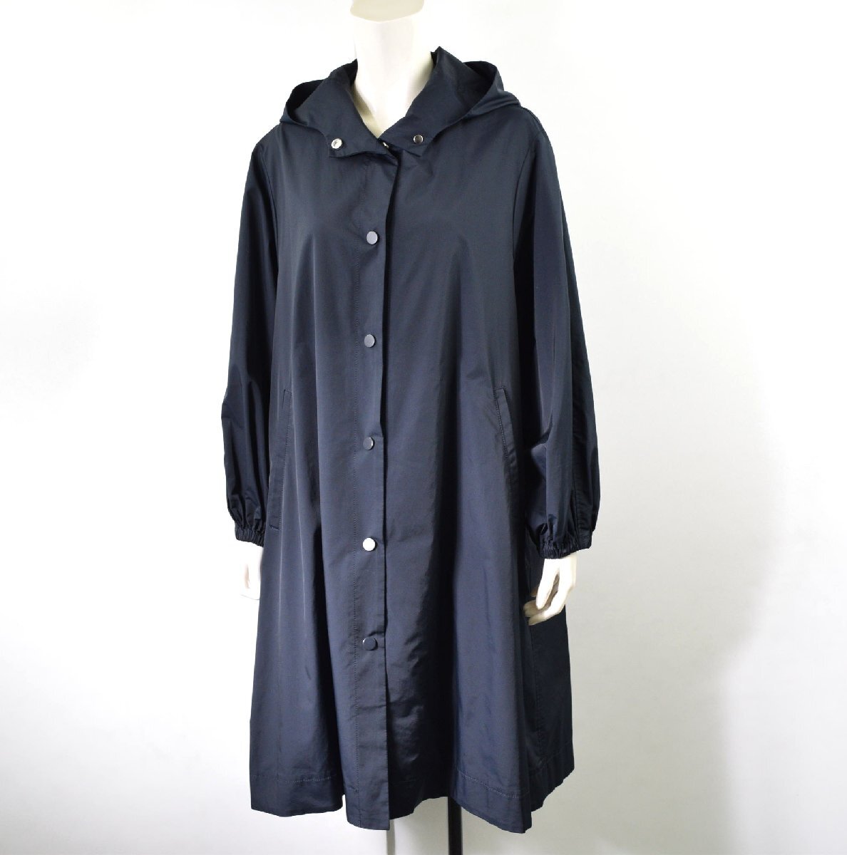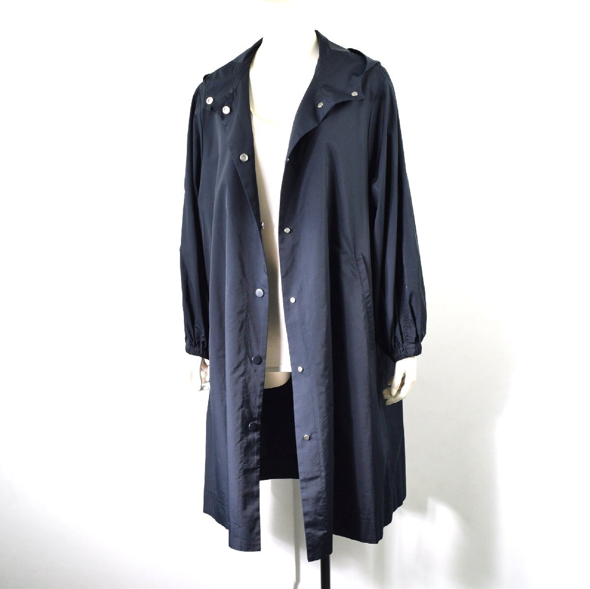 2539-25Q0066★BALLSEY ボールジー★美品 ライト タフタ フーデッド コート ロング ネイビー 紺 36 春秋アウター