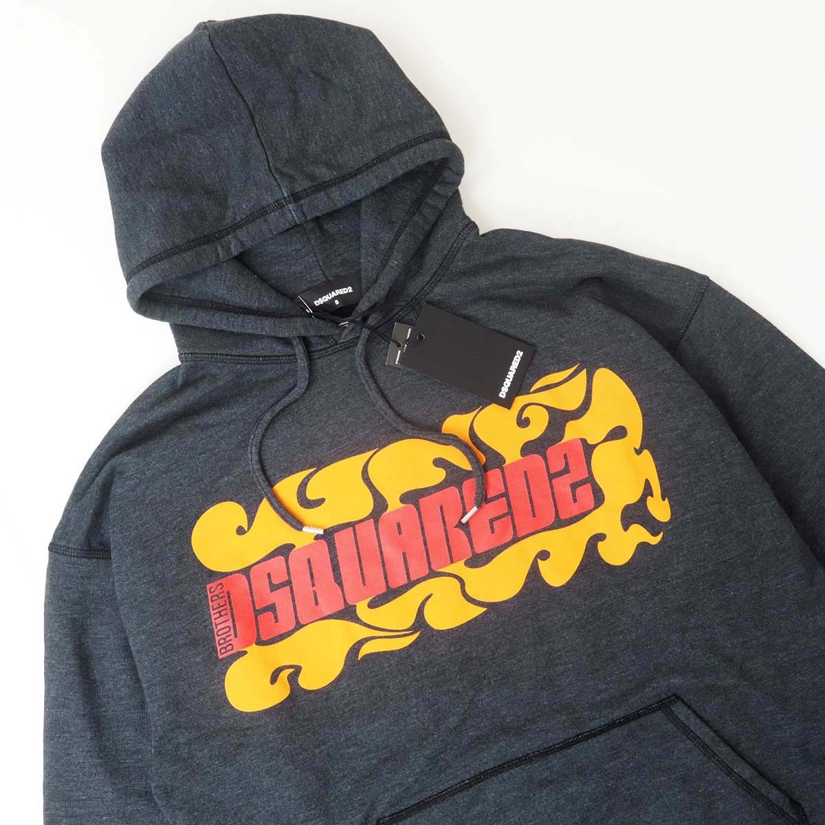新品正規品 DSQUARED2 ディースクエアード ファイヤー グラフィック オーバーサイズ スウェット パーカー ブラック L