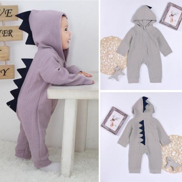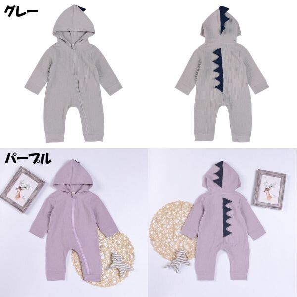 恐竜 ロンパース 赤ちゃん用 男の子/女の子兼用 グレー 90サイズ 着ぐるみ アート インスタ映え 寝相アート お昼寝アート
