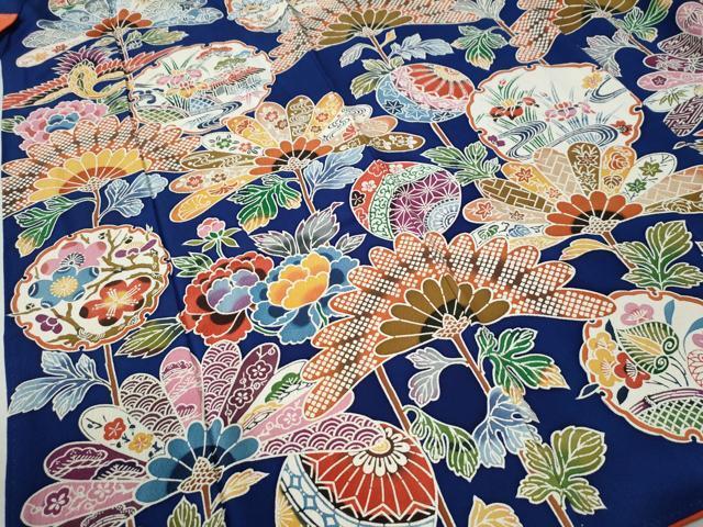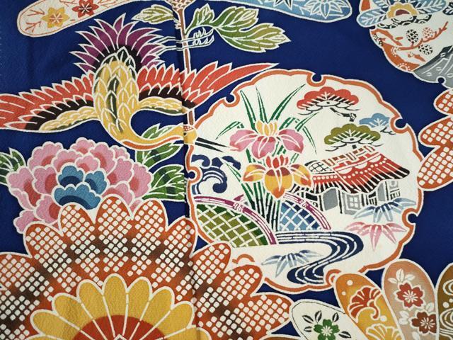 【正絹】 状態は接写画像のように衿山に汚れ、胴裏にアク汚れがございますが その他特に目立ったシミ汚れなどもなく大変良い状態です。 紅型とは沖縄の伝統的な染物のことで、 型紙を使ったおおらかで自由な文様と、 南国らしい力強さがあふれる鮮やかな色彩が特徴的でございます。 「びん」は色、「かた」は模様のことを意味しており、 琉球王朝時代から、高貴な人々が身にまとったとされます。 創作工程の第一は、意匠を凝らした下絵を描き、 丁寧に型紙を彫ることから始まり、型紙を生地に伏せ、 糊で防染し、糊が置かれていない部分に手仕事で色を挿していきます。 染めた跡にまた糊を洗い落とし、今度は色を挿した部分に糊をおき、 残りを丹念に染めるという作業をコツコツと繰り返すことで 鮮やかな色彩が生まれていくのです。 大変上質な逸品になります。 お安く出品致しますので、是非この機会にいかがでしょうか? |