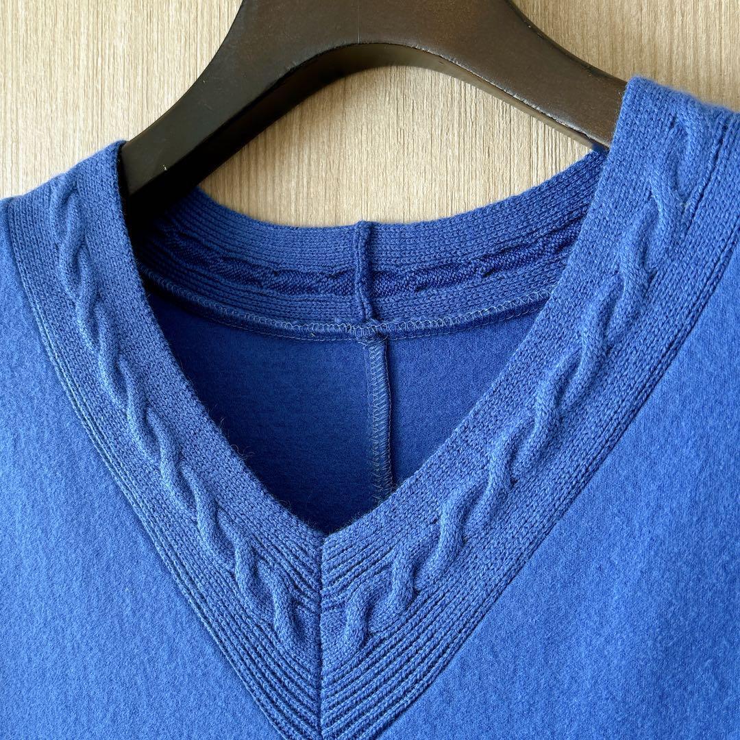 衿はケーブル編みにし、デコルテが綺麗に見えるV開きにしました。