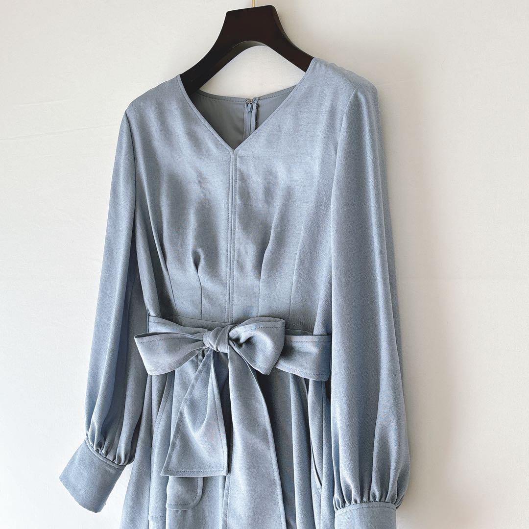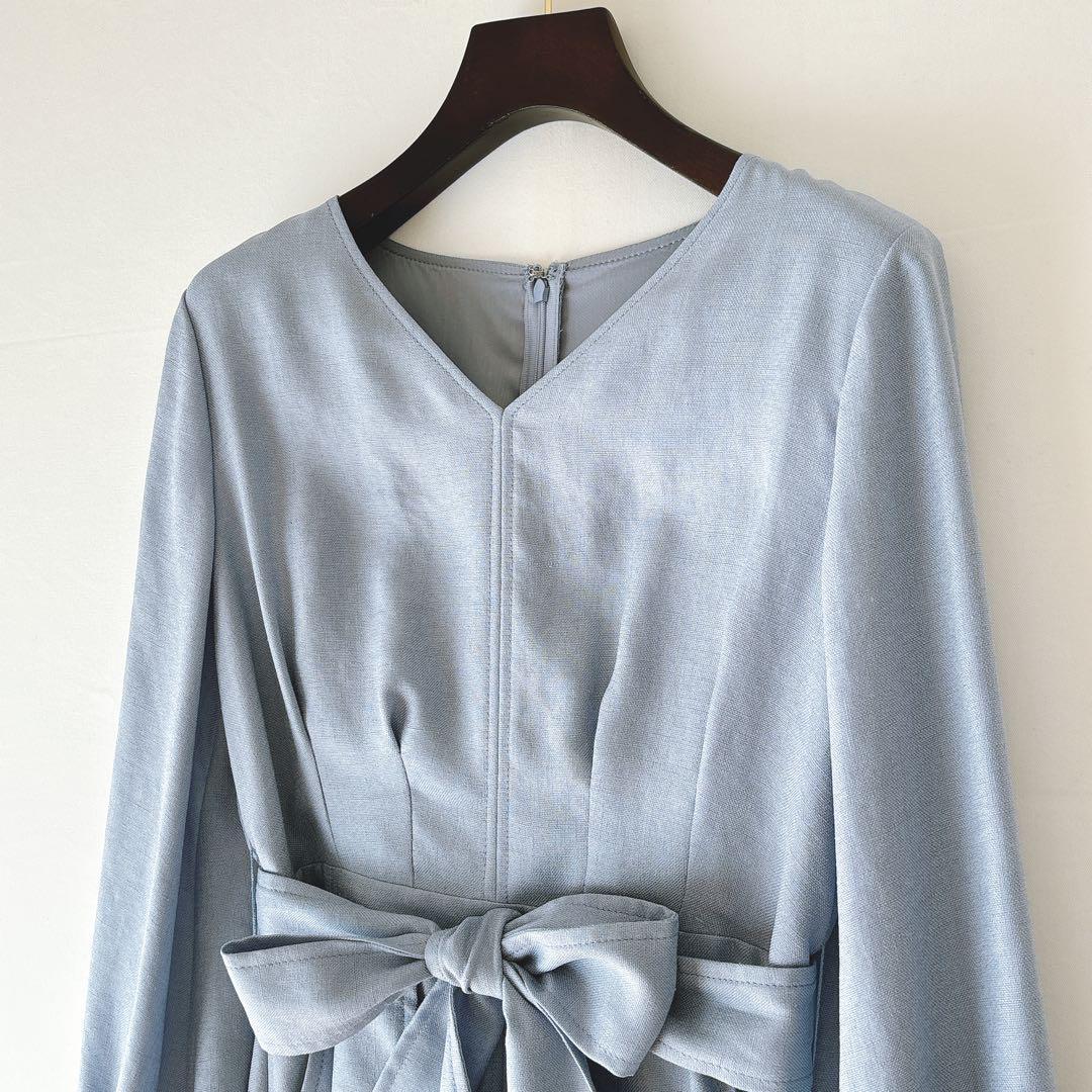 ウエストリボンはサッシュ結びにして大人っぽくがお勧めです。ウエスト後ろはゴムを入れているので、着心地も抜群です。