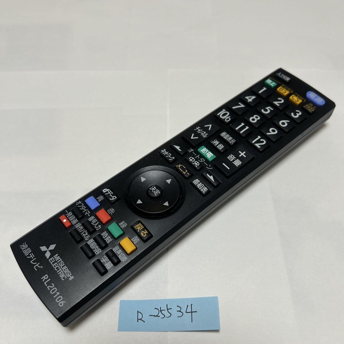 スピード&匿名発送!●送料無料!●中古三菱テレビ用リモコン【RL20106】●赤外線信号確認済み●即決!●初期不良安心保証●
