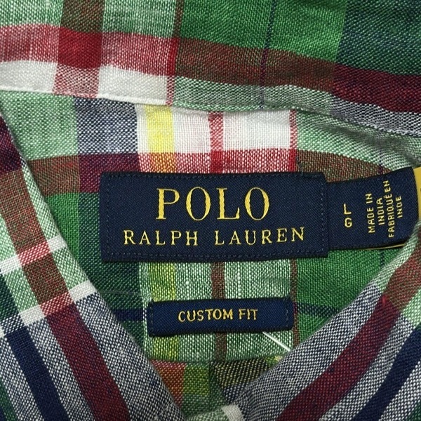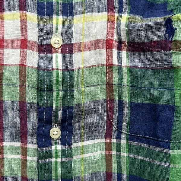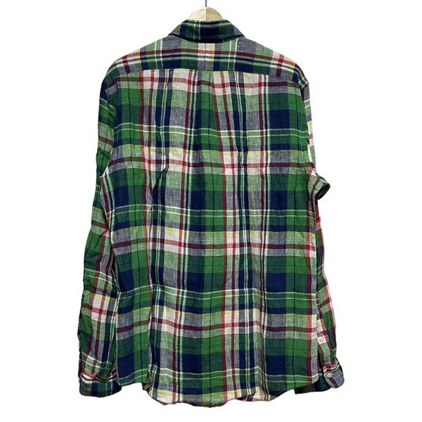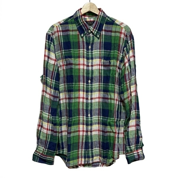 ポロラルフローレン POLObyRalphLauren 長袖シャツ サイズL - グリーン×ネイビー×マルチ メンズ 麻/チェック柄 トップス