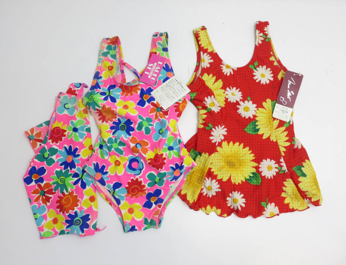 ☆保管・未使用品☆女の子水着まとめ 7枚まとめ 100×5枚 110×2枚 ワンピース 女児 花柄 キティちゃん 昭和レトロ |