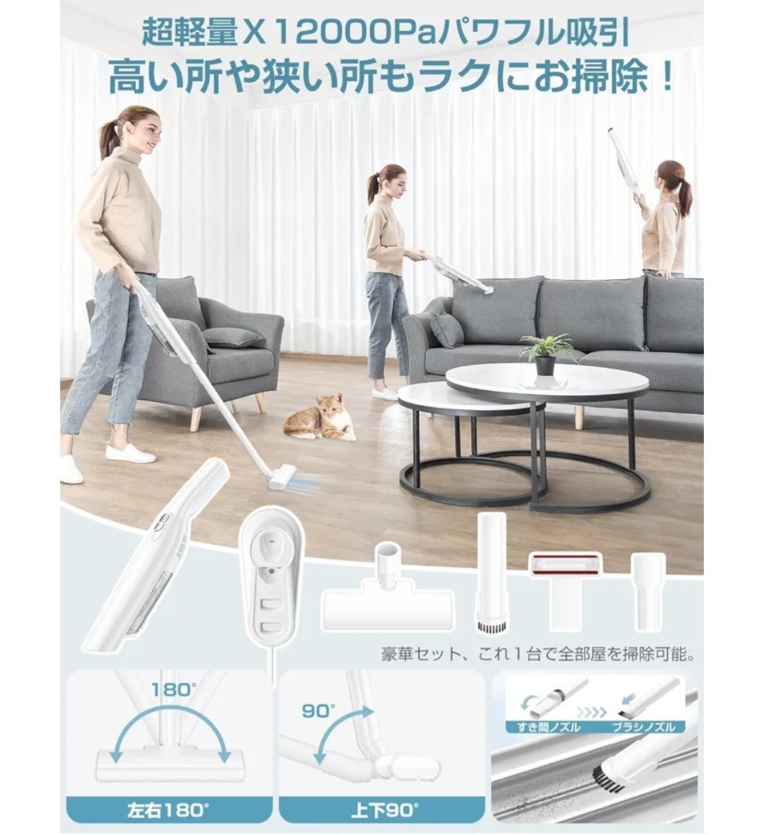 掃除機 コードレス 【2025新登場】15000pa超強力吸引 ハンディスティックク 超軽量 リーナー vacuum cleaner cordless そうじき 電気掃除機 2wayタイプ LEDライト付き 自走式 多重濾過 HEPAフィルター サイクロン式 充電式 Type-C充電スタンド 充電台収納 一人暮らし 家庭用 車用 年末お掃除 日本語取扱説明書