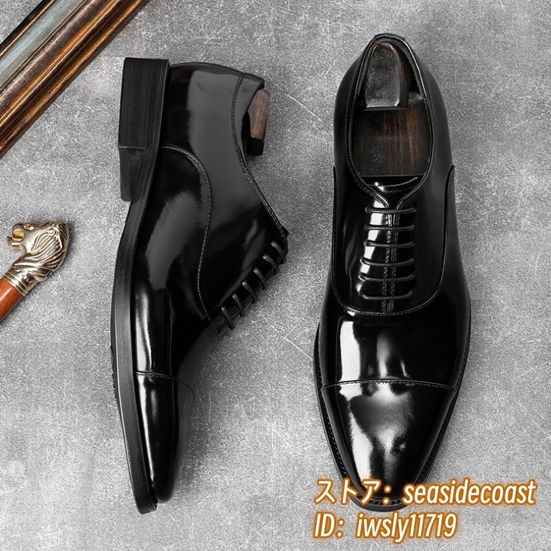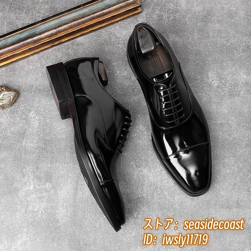 9万◆最高級 ビジネスシューズ 新品 メンズ 本革 レザーシューズ 正規品 職人手作り 牛革 手塗仕上げ 超希少 紳士靴 革靴 ブラック 27.5cm