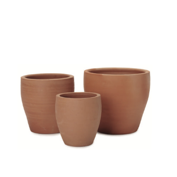 約900°Cという比較的低温で焼かれたやさしいフォルムの素焼きは通気・水はけがよく、ガーデンの花々をやさしく育んでくれます。
