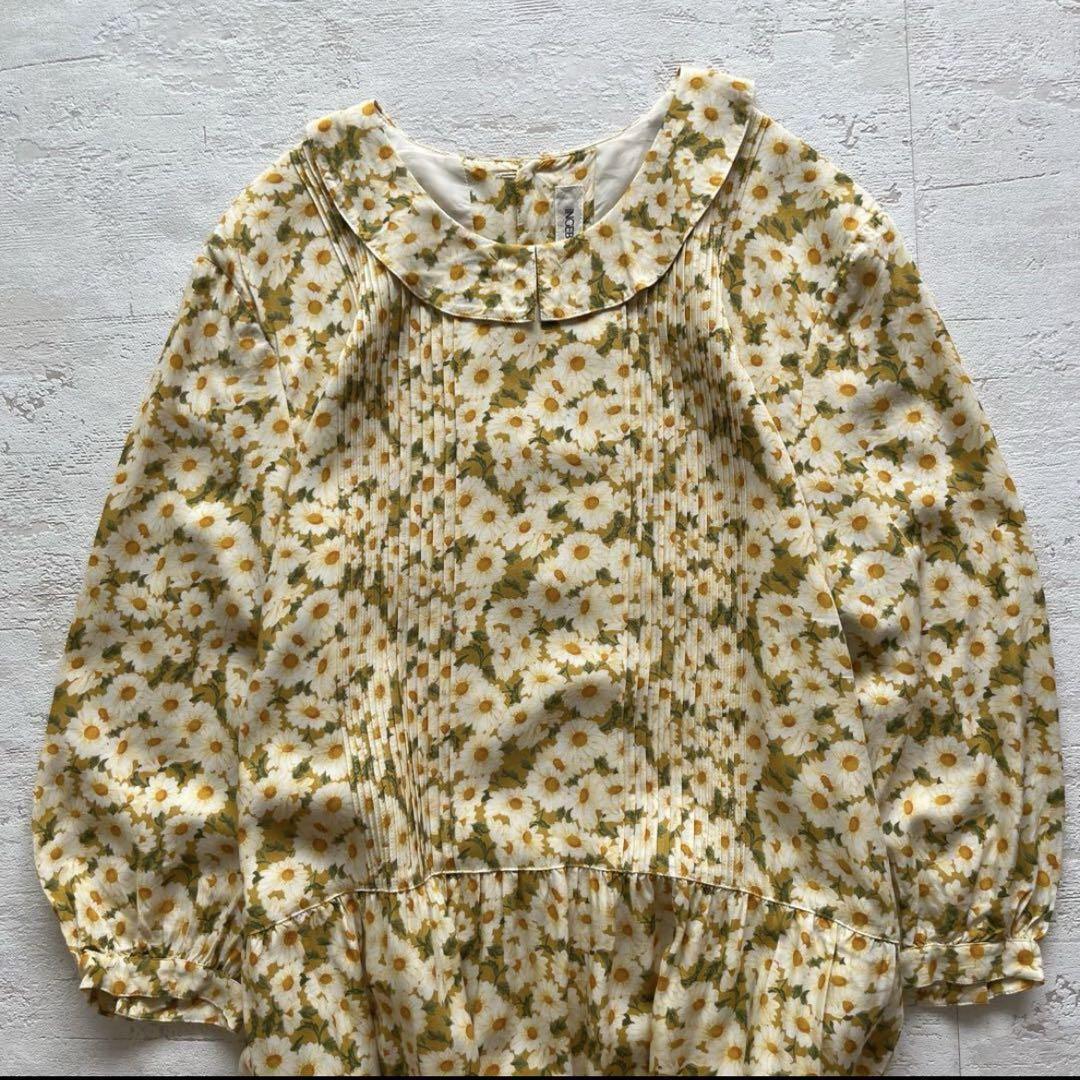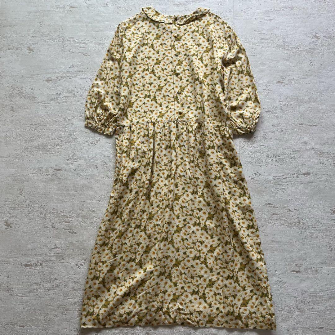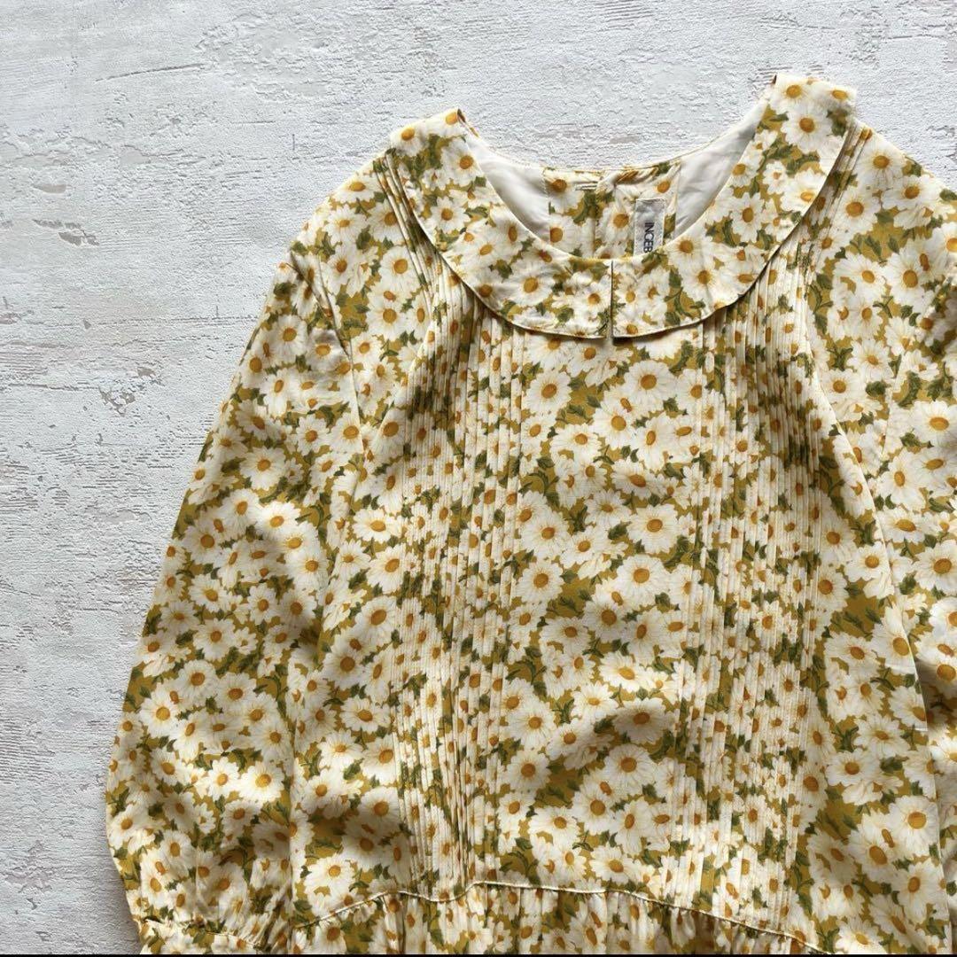 インゲボルグ(INGEBORG)のデイジー柄ワンピースです。全体に広がる小花柄が華やかで、クラシカルな雰囲気を演出してくれる一枚。ゆったりとしたシルエットにロング丈で、上品さとリラックス感を兼ね備えています。襟元のデザインも可愛らしく、ナチュラルでフェミニンな印象。春夏は一枚で爽やかに、秋冬はカーディガンやジャケットを羽織ってコーディネート可能。お出かけやお呼ばれ、デイリーにも活躍できる万能アイテムです。目立ったダメージはなく、まだまだ長くご愛用いただけます。人気のデイジーモチーフでお探しの方におすすめです。