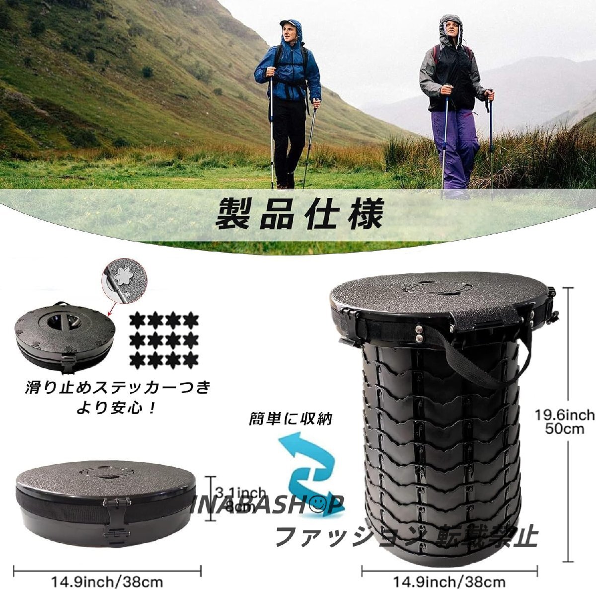 【使い方簡単&持ち運び便利】展開する前に丸いバックの形で、折り畳みも可能なので、使わない時はコンパクトにバッグとリュックなどを入れて収納でき、持ち運びにとても便利です。折りたたむ時厚さは8cmで、普段は引き出し、玄関などのコーナーに置いて、場所を取りません。使い方も簡単で、一瞬でスツールを引き出し・収納することは可能です。