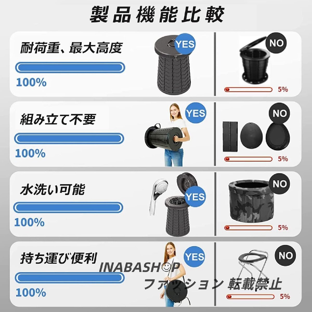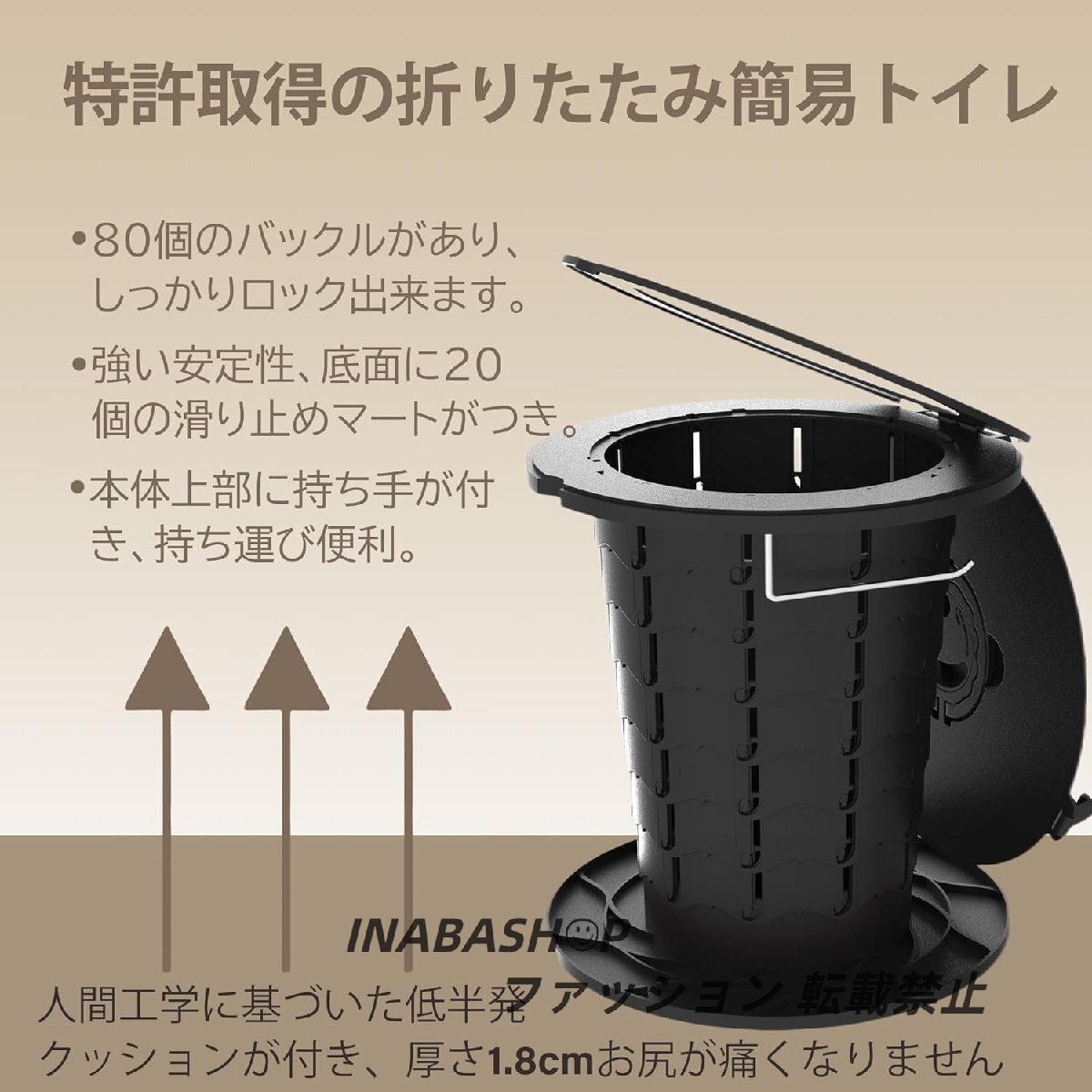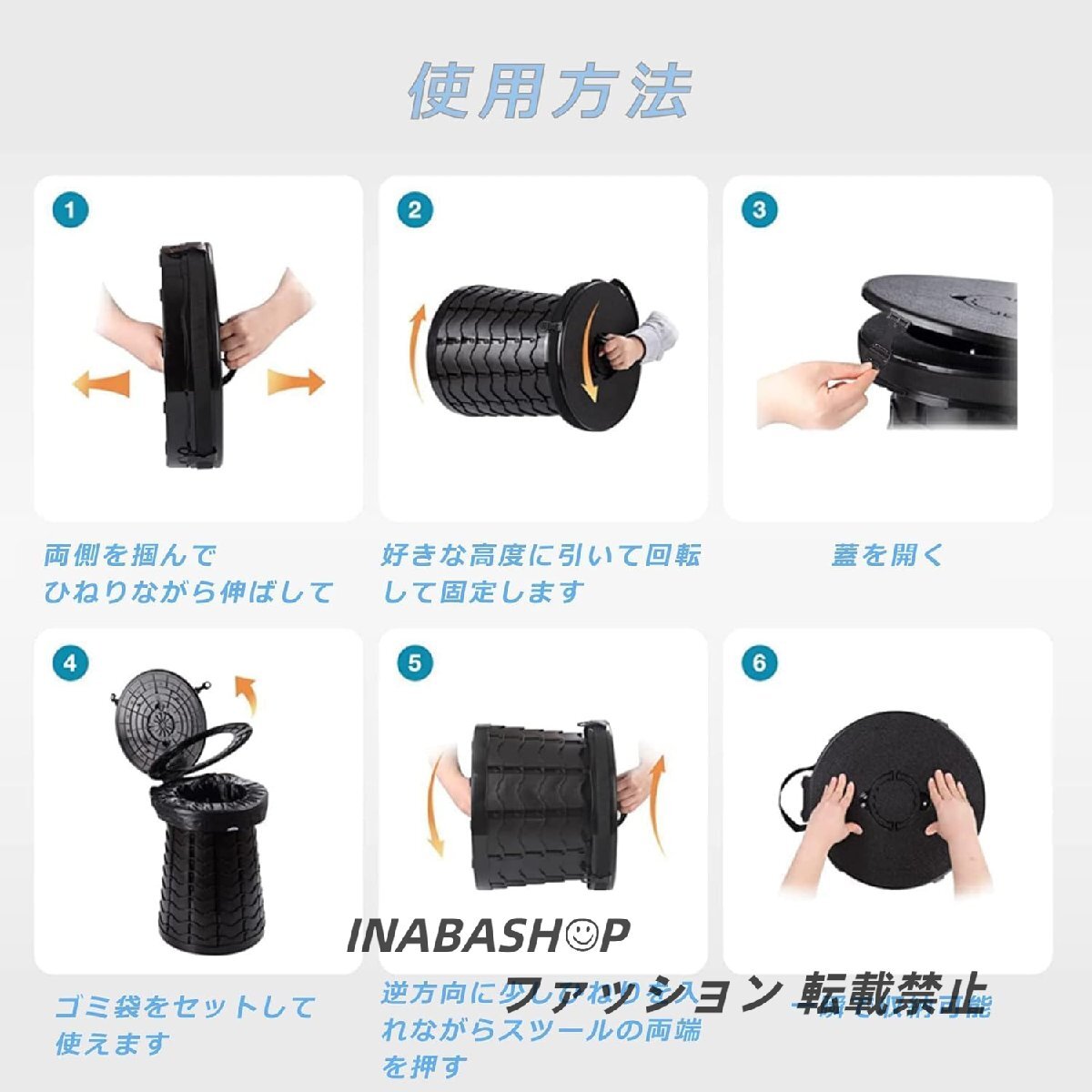 【衛生面&組み立て不要】たくさんの人は使うトイレの衛生面に心配があるから、水洗いが可能で衛生的で、個人用トイレなら清潔に安心して使えます。そして、高さは調整でき、他社の携帯トイレと比べて、組み立ても不要で、子供、高齢者、大人、各年齢層の人に適合します。