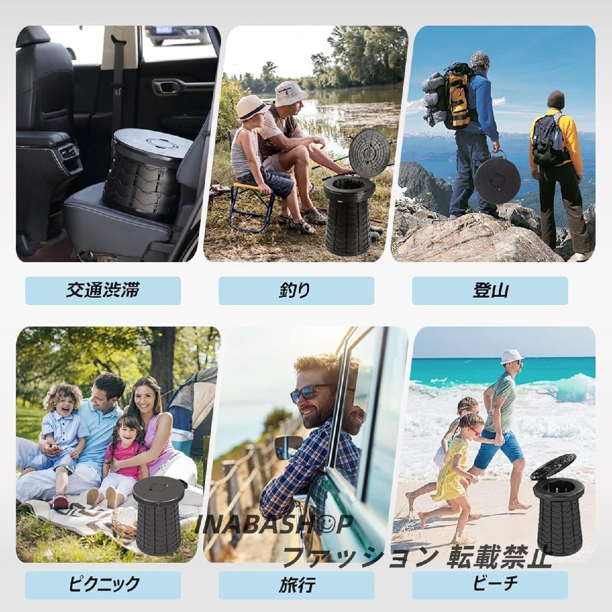 【幅広い&多機能折り畳み椅子】普段はふたを閉めて、折り畳み椅子としてご利用いただけます。折り畳み椅子だけでなく、簡易トイレ、踏み台、ゴミ箱としても使えます。キャンプ、釣り、運動会、ハイキング、バーベキュー、川遊び、海遊び、焚き火、スポーツ観戦、旅行、登山、お花見、撮影などさまざまなアウトドア活動で活躍できます。