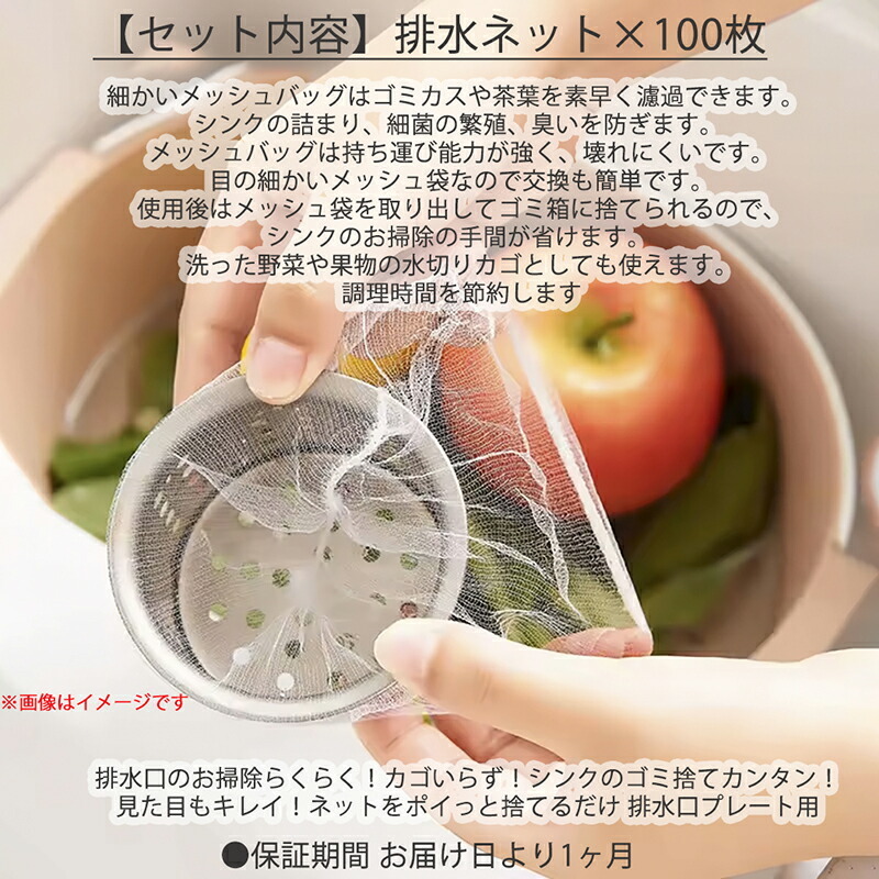 交換ネット100枚 排水口のお掃除らくらく!カゴいらず!シンクのゴミ捨てカンタン!見た目もキレイ!ネットをポイっと捨てるだけ 排水口プレート用