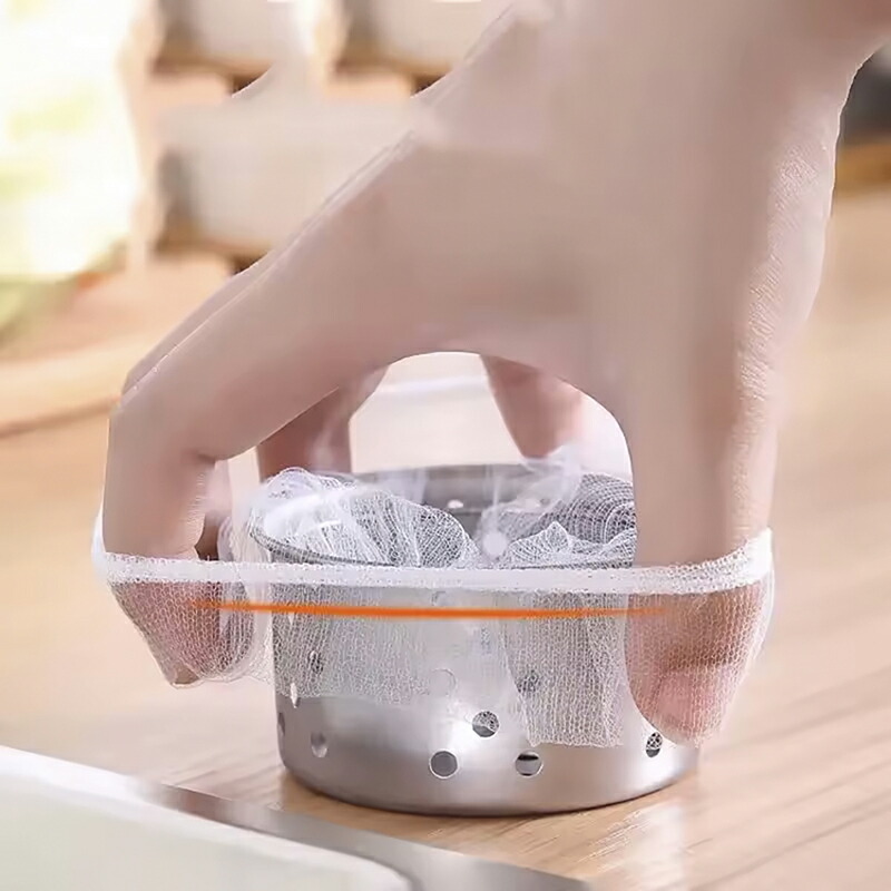 細かいメッシュバッグはゴミカスや茶葉を素早く濾過できます。 シンクの詰まり、細菌の繁殖、臭いを防ぎます。 メッシュバッグは持ち運び能力が強く、壊れにくいです。 目の細かいメッシュ袋なので交換も簡単です。
