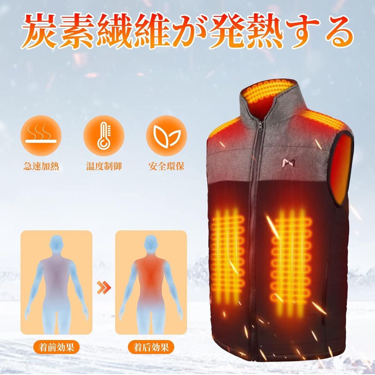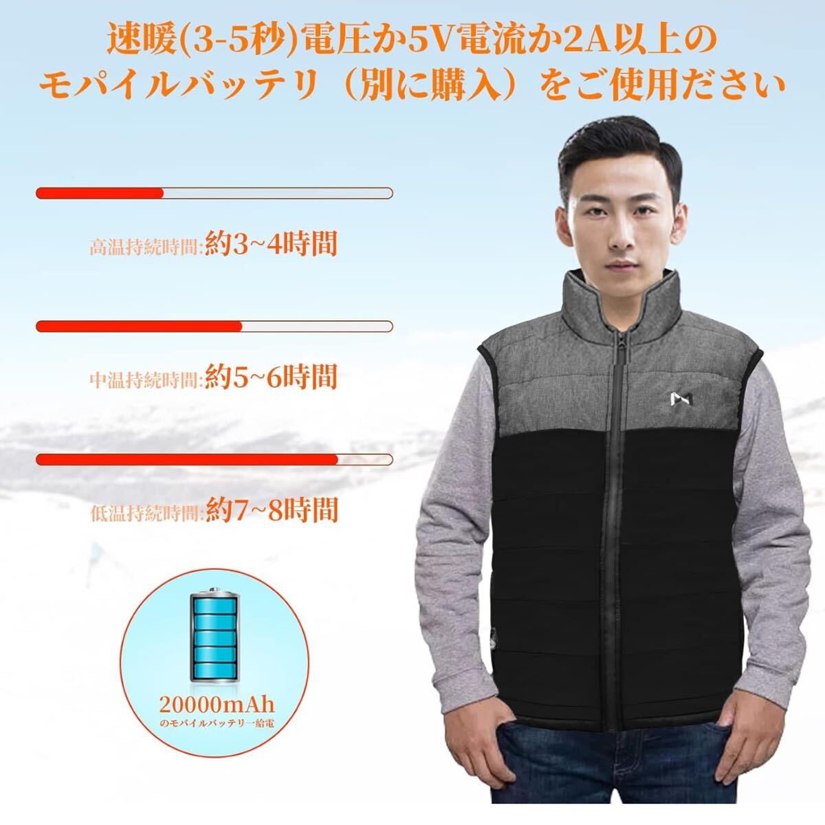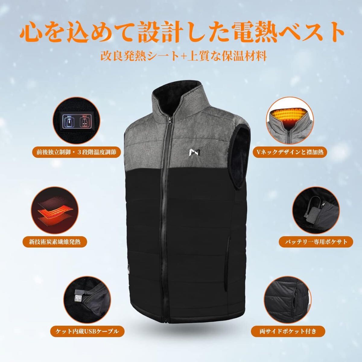 【急速発熱】:この耐寒USBジャケットは、最新のカーボンファイバー素材と輸入高品質のTPUヒーティングシート素材を採用しています。従来の熱線よりも熱効率が良く、3秒でスムーズな予熱を実現します。