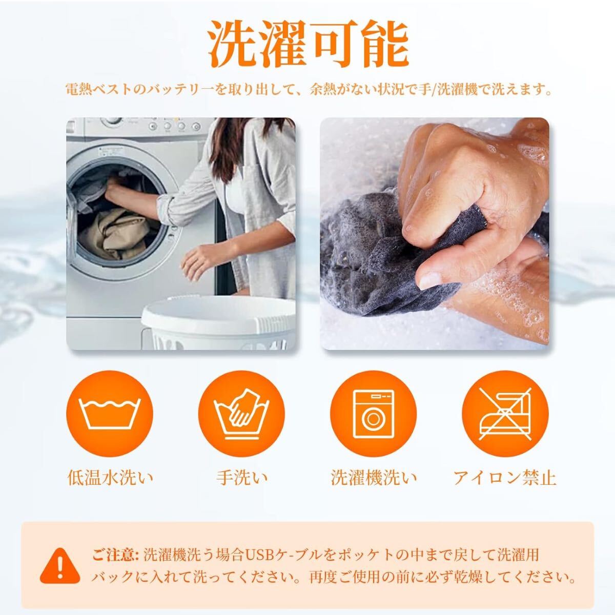 【水洗可能】:USBジャケットのバッテリーを取り外し、余熱なしで手洗/機械洗いが可能です。強く揉められない。自然乾燥後も使用できます。高品質の化学繊維綿を使用し、保温性が軽い。静電気防止で、簡単にセーターを着ることができます。