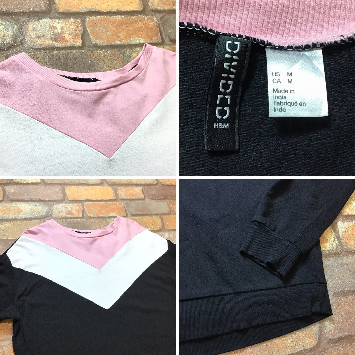 合計落札金額¥8,000円以上で、、、 送料無料!! ※こちらからの[合計支払い金額通知]をご確認の上、お支払い下さい♪ -------------------------------- 【 H&M DIVIDED エイチ&エム 】 V切替デザイン ライトウエイト スウェットシャツ ● USA輸入・正規品 ● ● 海外サイズ規格 ● -------------------------------------------------------- あまり目立ちませんが、胸(白地部分)に小さいヨゴレがあります。 人気・H&Mの『DIVIDED』ライン。 V切替デザイン・カラーリングのNICEな1着です◎ ------------------------------------------------------ ◆ サイズ ◆ レディース M ※下記実寸のご確認をお願いいたします。 ◆ 実寸◆ 肩幅:55cm 身幅:57cm(両脇下間を計測) 着丈:57cm(背面襟元~裾を計測) 袖丈:58cm 素人採寸の為、多少の誤差はお許しください。 -------------------------------------------------------- ◆ 素材表記 ◆ コットン 100% ----------------- | |||||